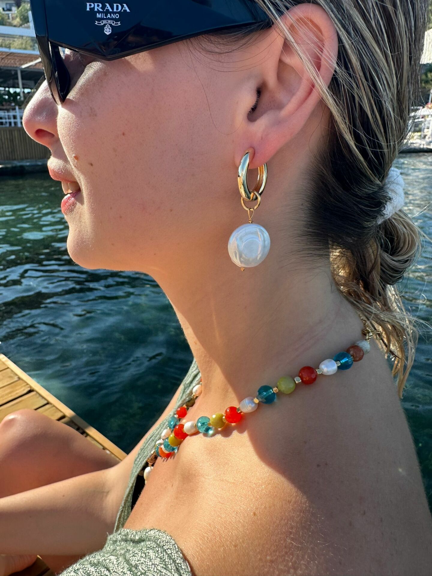 Almira küpe barok inci sallantıları ile yapılmıştır. Halka küpe altın suyuna batırılmış nickel free'dir. Uzun süre kullanım için kimyasal temasına dikkat edilmesi önerilir.