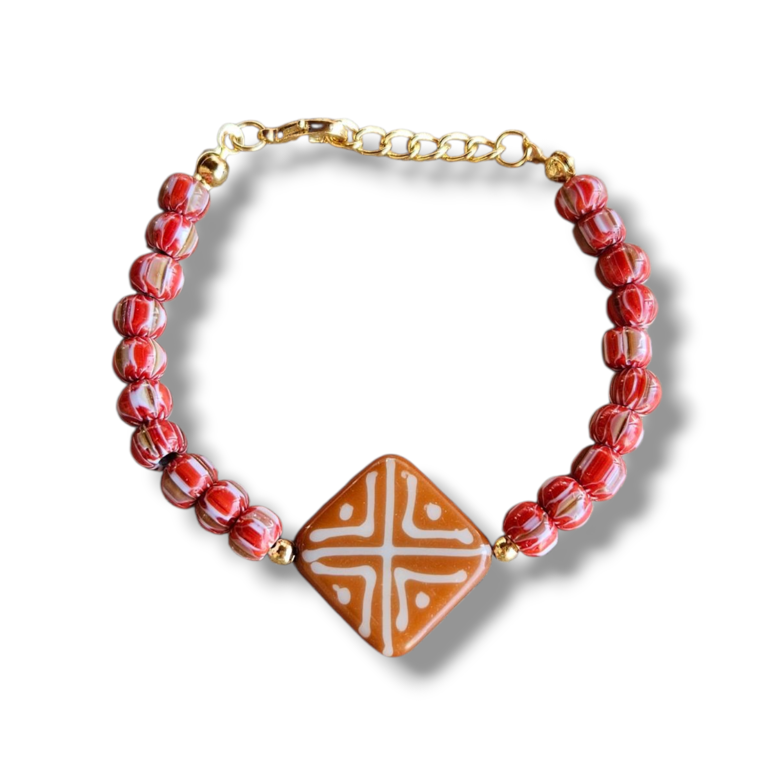- Malzeme : Chevron afrika işi cam boncuk ve reçine boncuk. Aparatlar pirinç üzeri altın kaplamadır.
