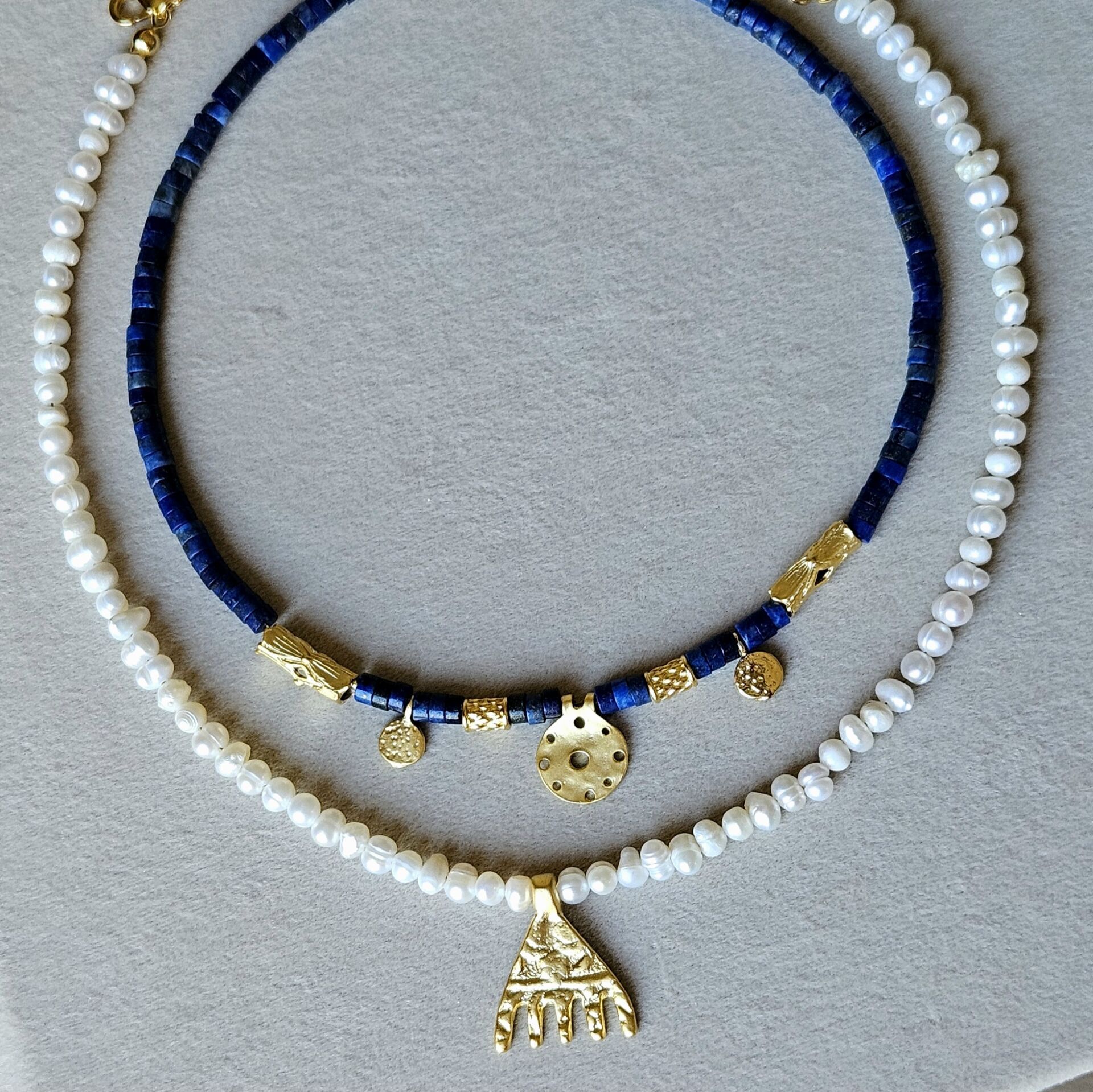 - Malzeme : Lapis lazuli doğal taş ve pirinç üzeri altın kaplama aparatlar.