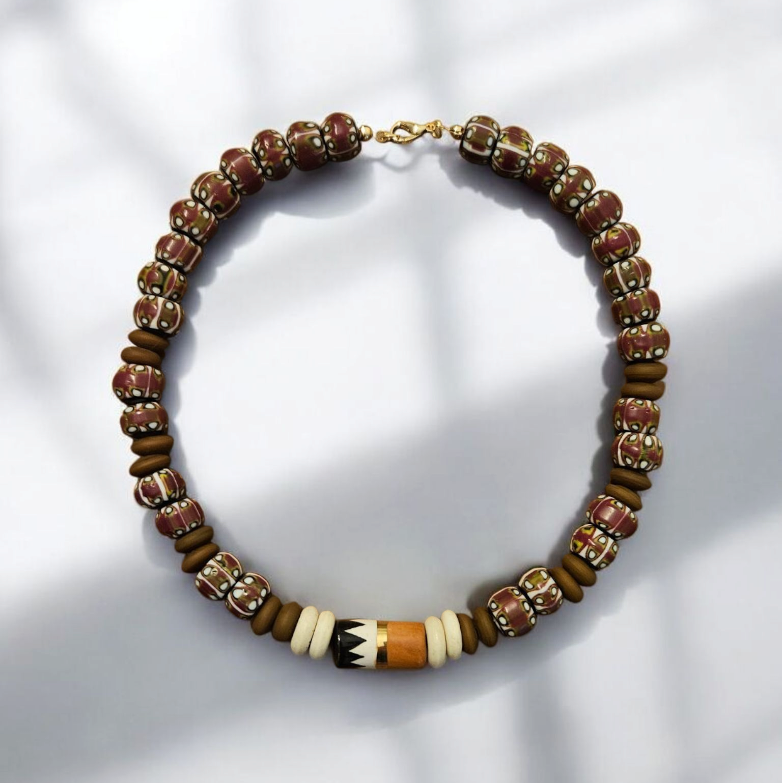 - Malzeme : Chevron cam boncuk, Tibet disk kemik boncuk, seramik.