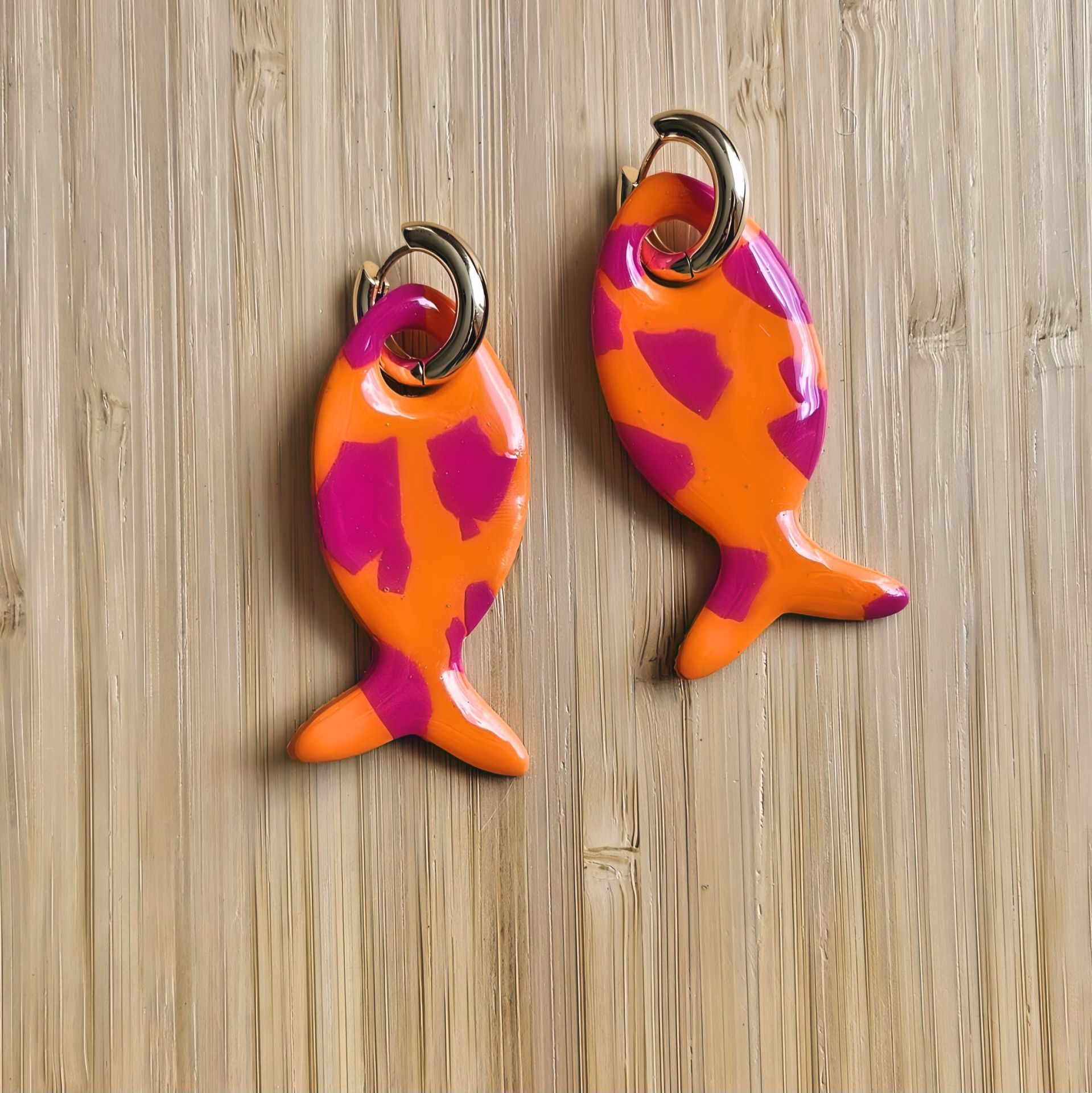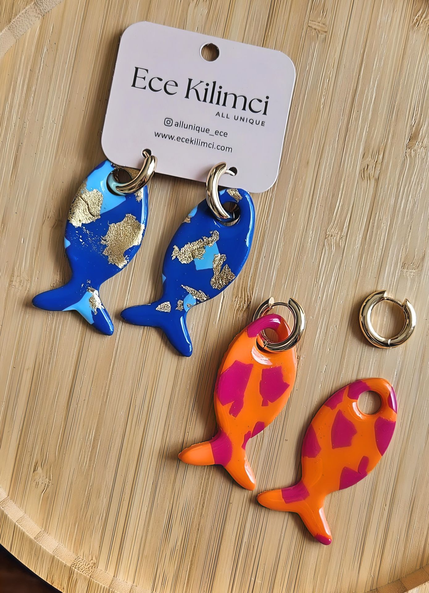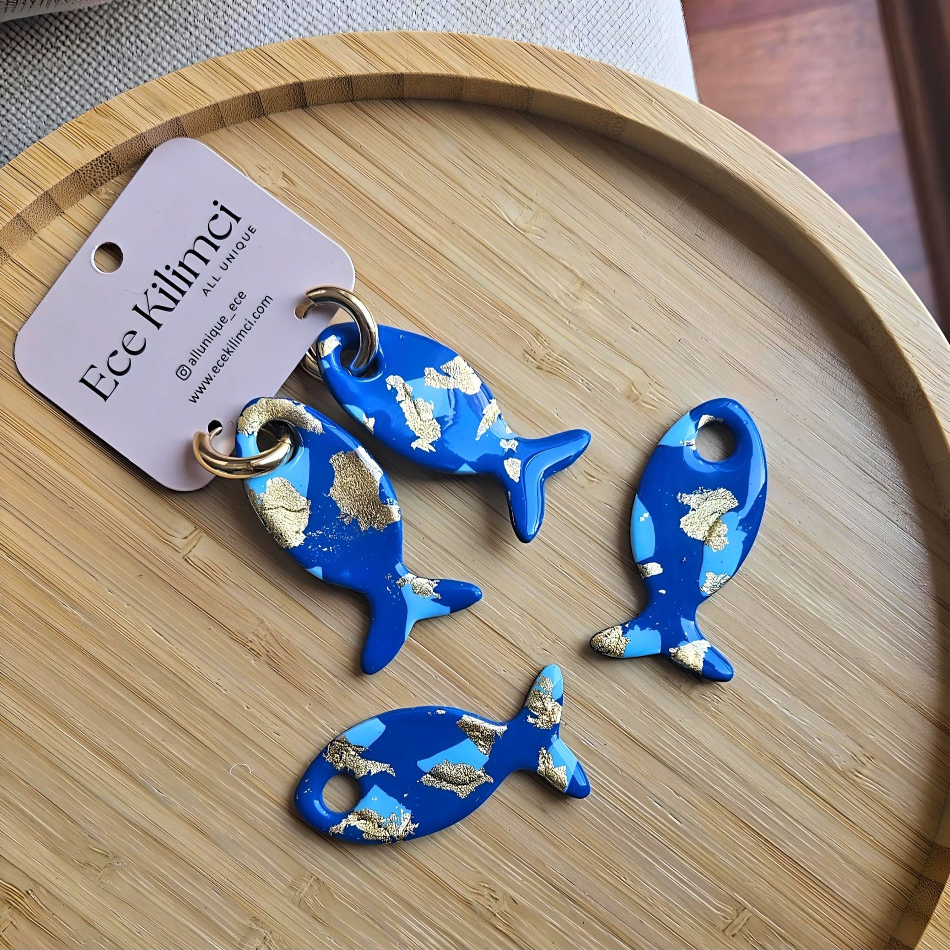 - Malzeme : Polimer kil, pirinç üzeri altın kaplama halka küpe. Balık 4 cm kadardır. Polimer kilden yapıldığı için hafiftir.