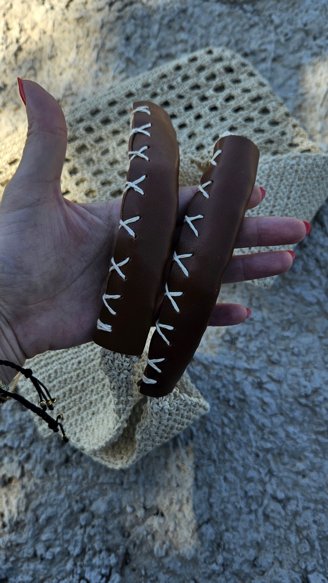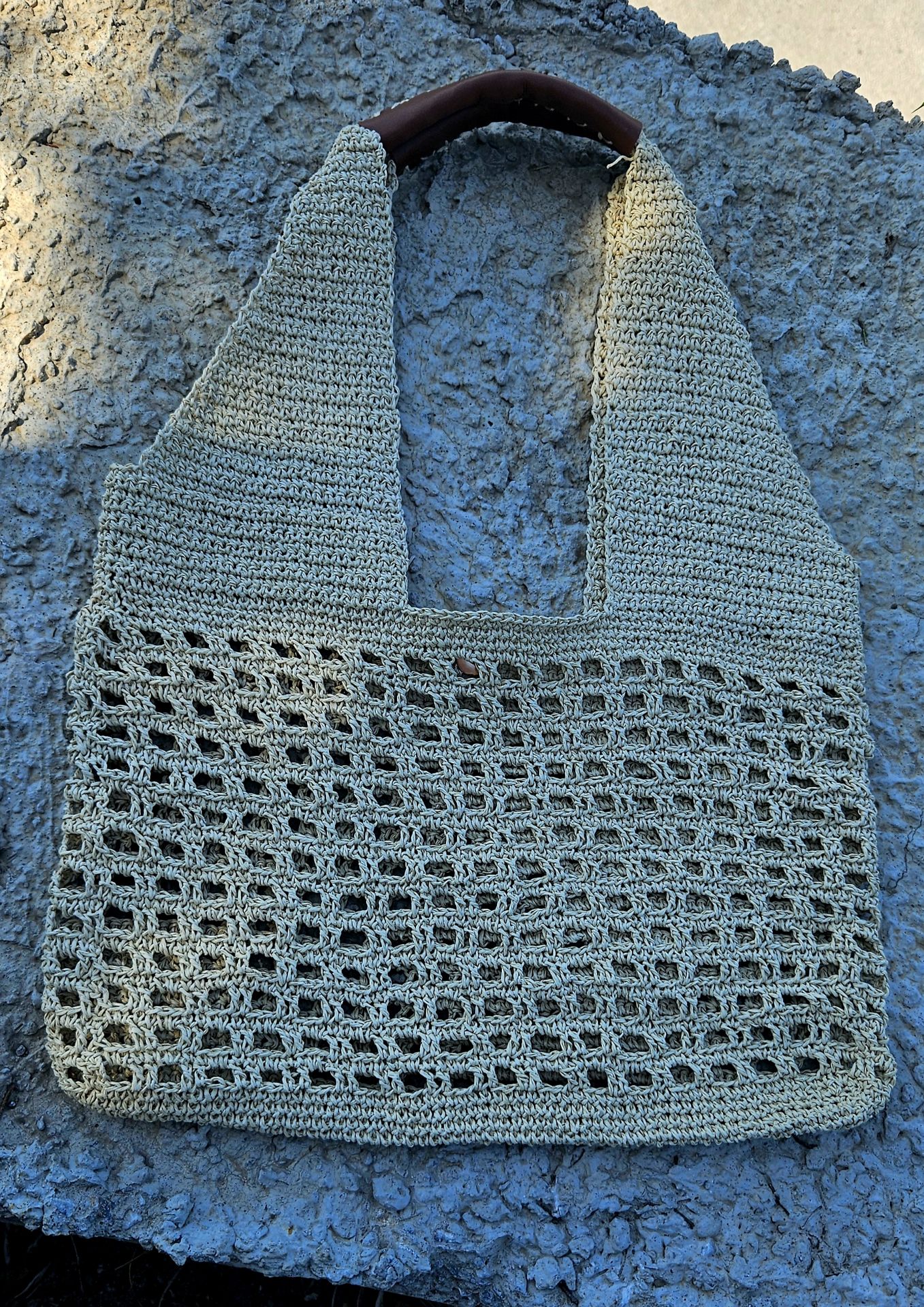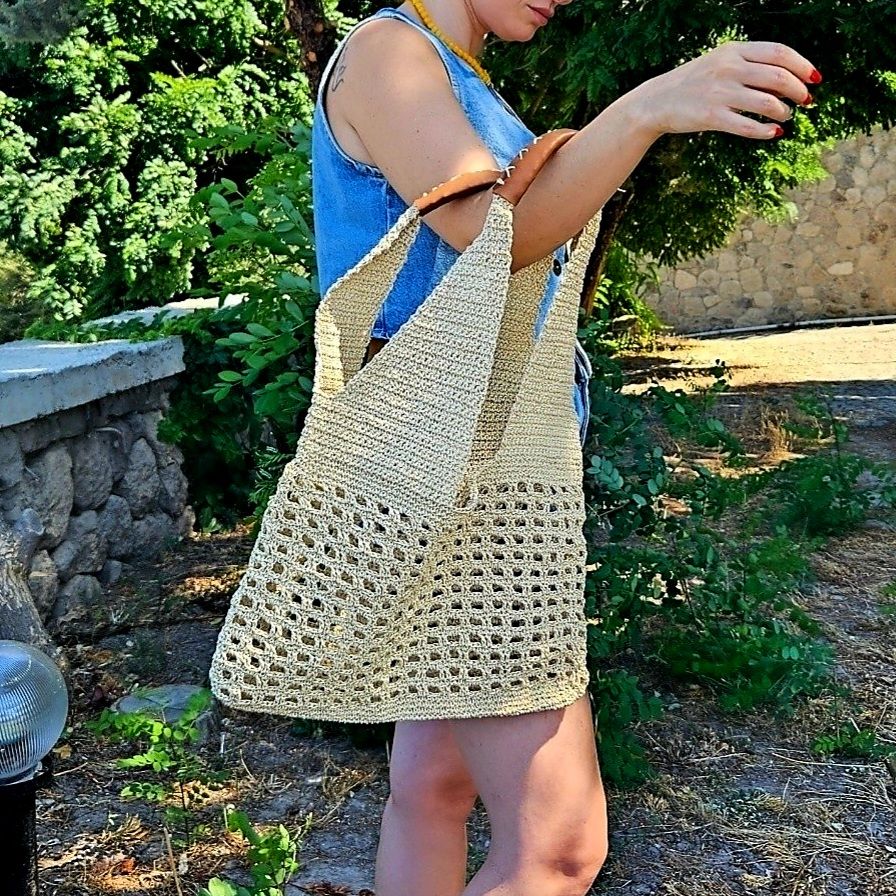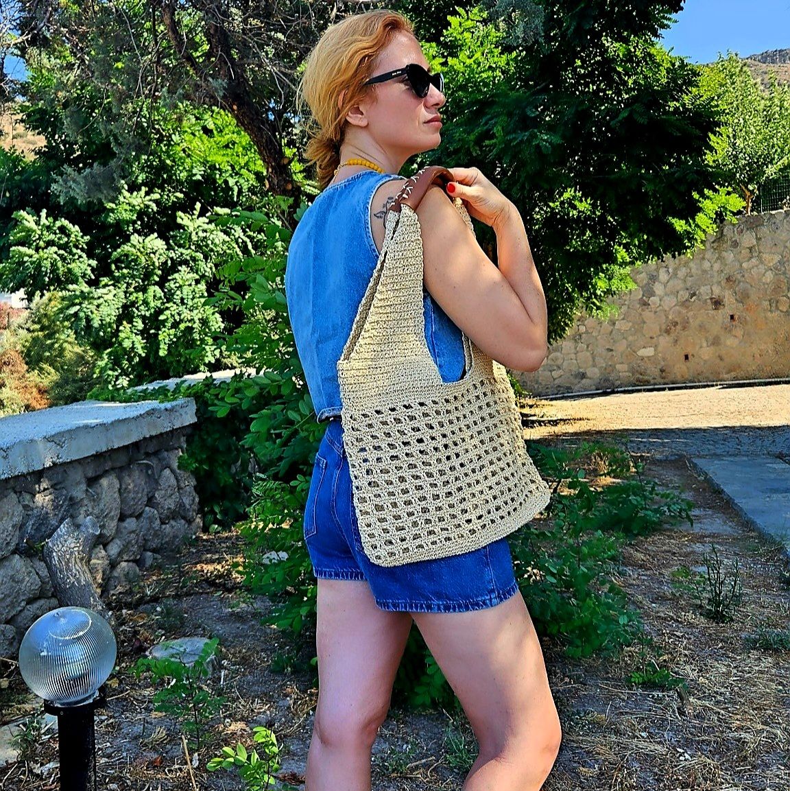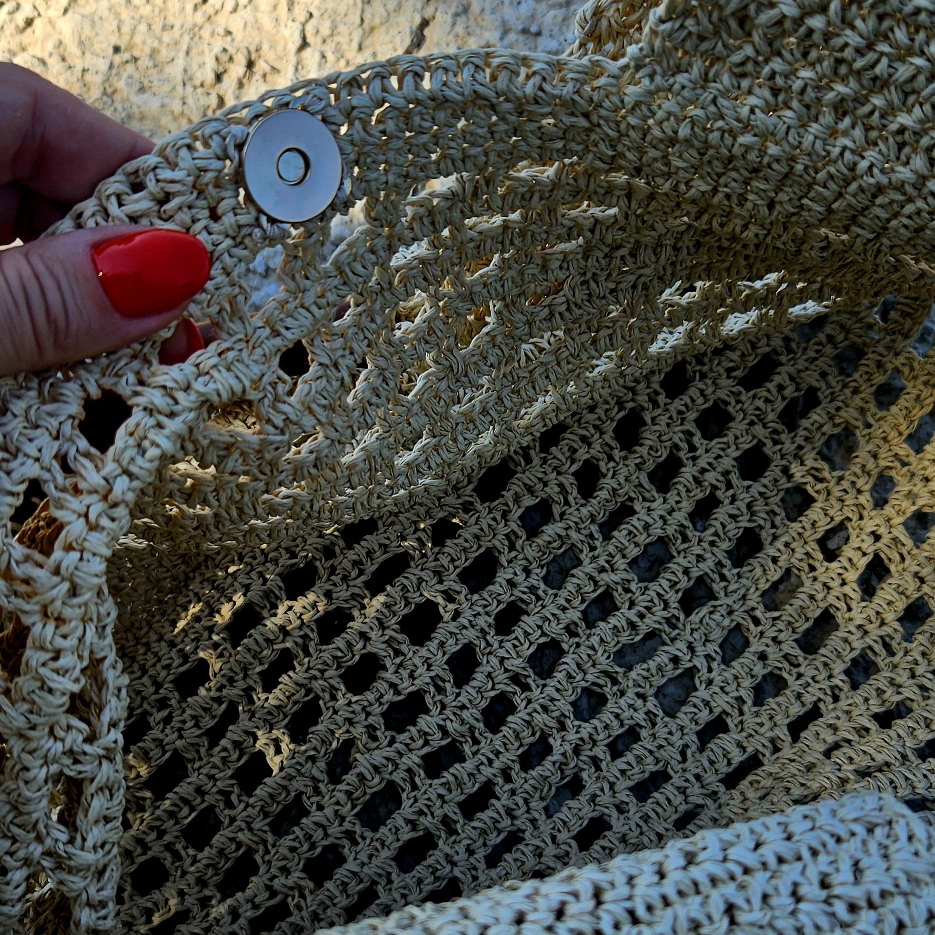 - Malzeme : Bej kağıt ip ile elde yapılmıştır. Astarsız, suni deri elcikli ve çıtçıt kapamalıdır.