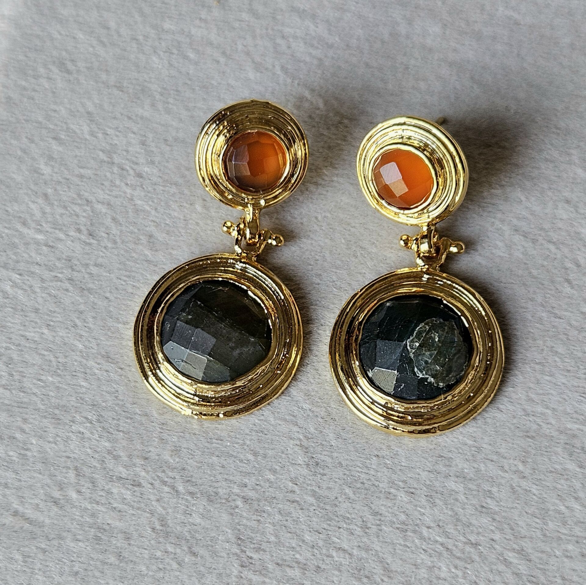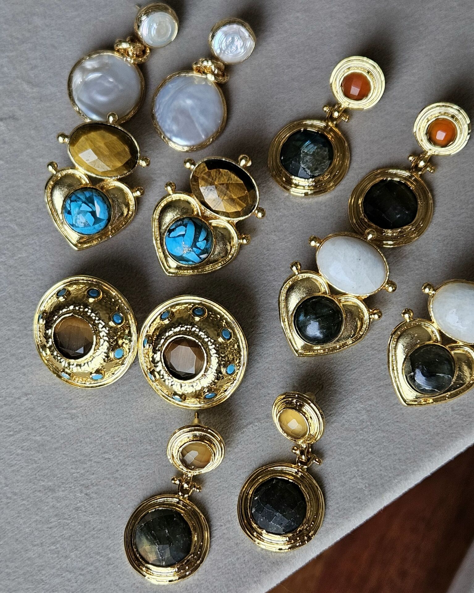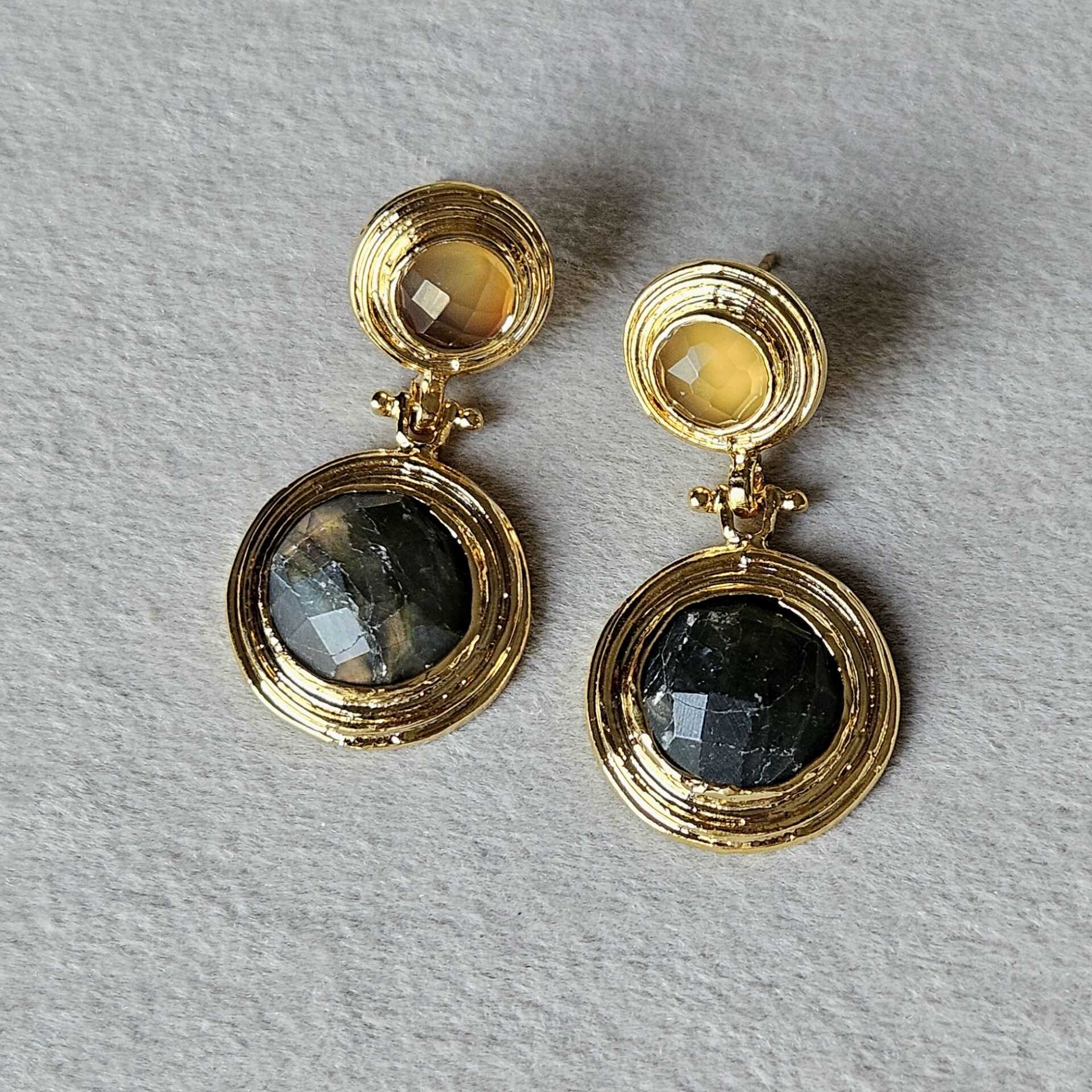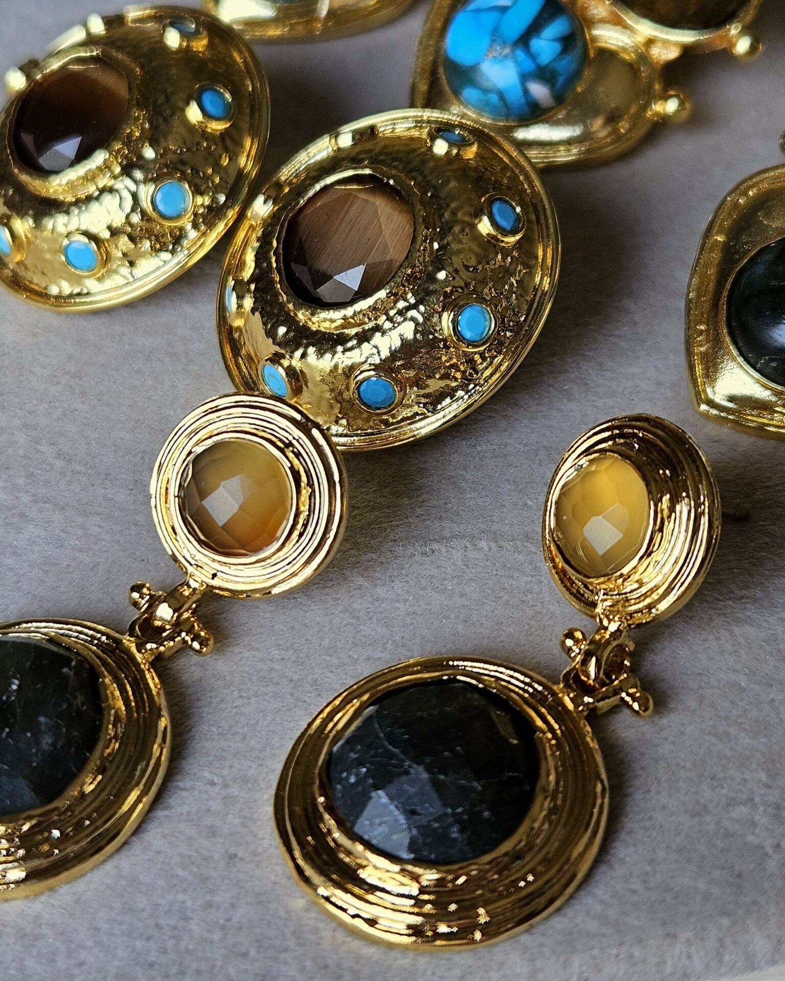 - Malzeme : Labrodorit ve kedi közü. Pirinç üzeri altın kaplama.