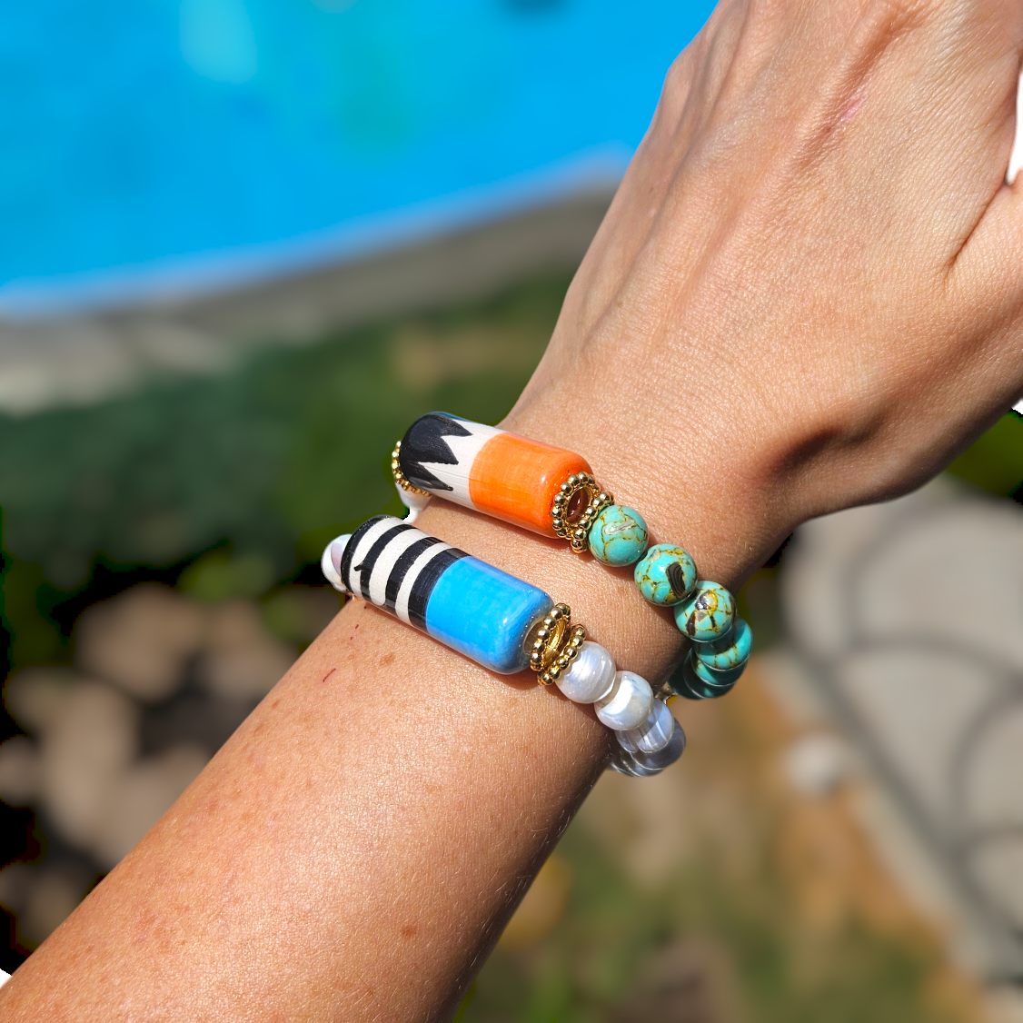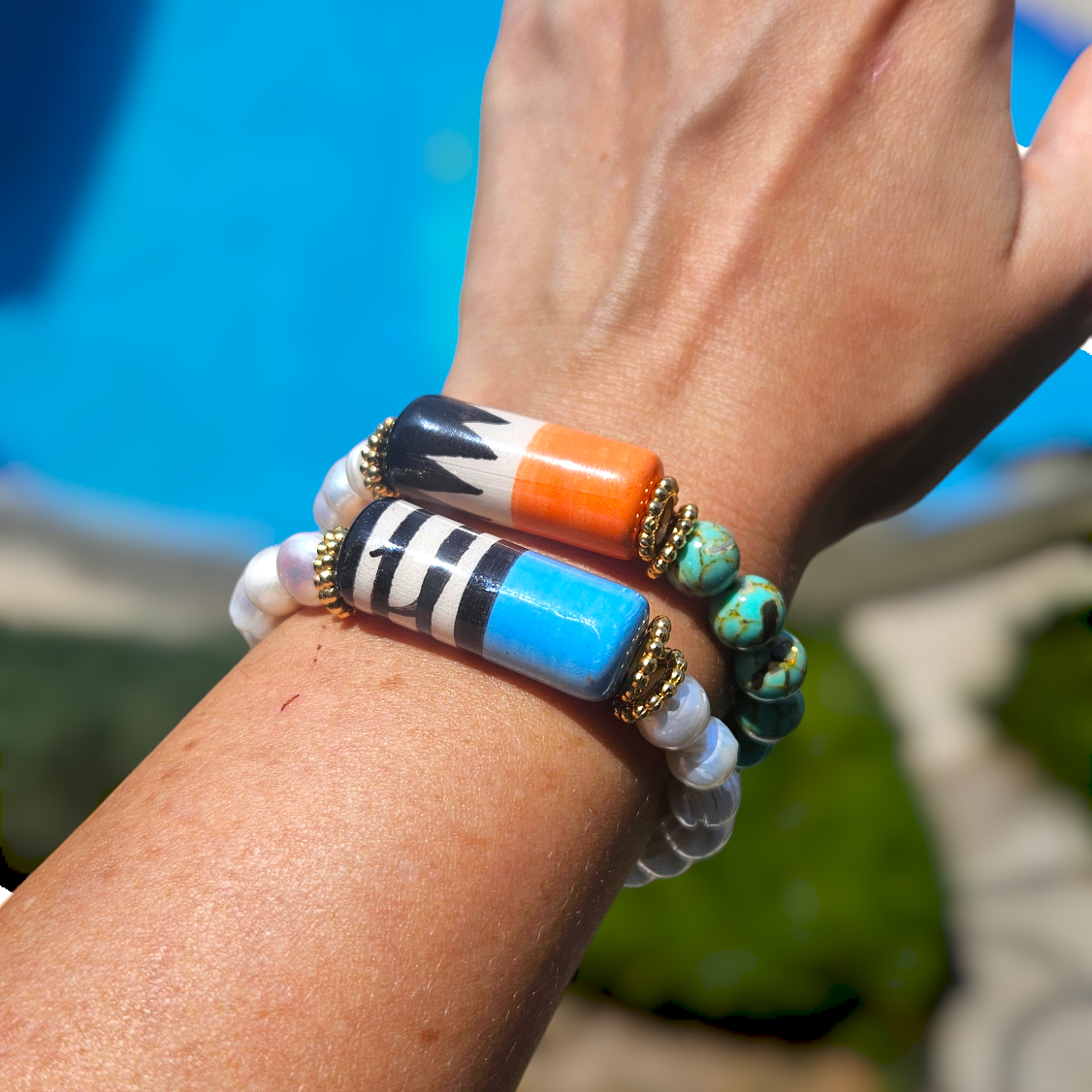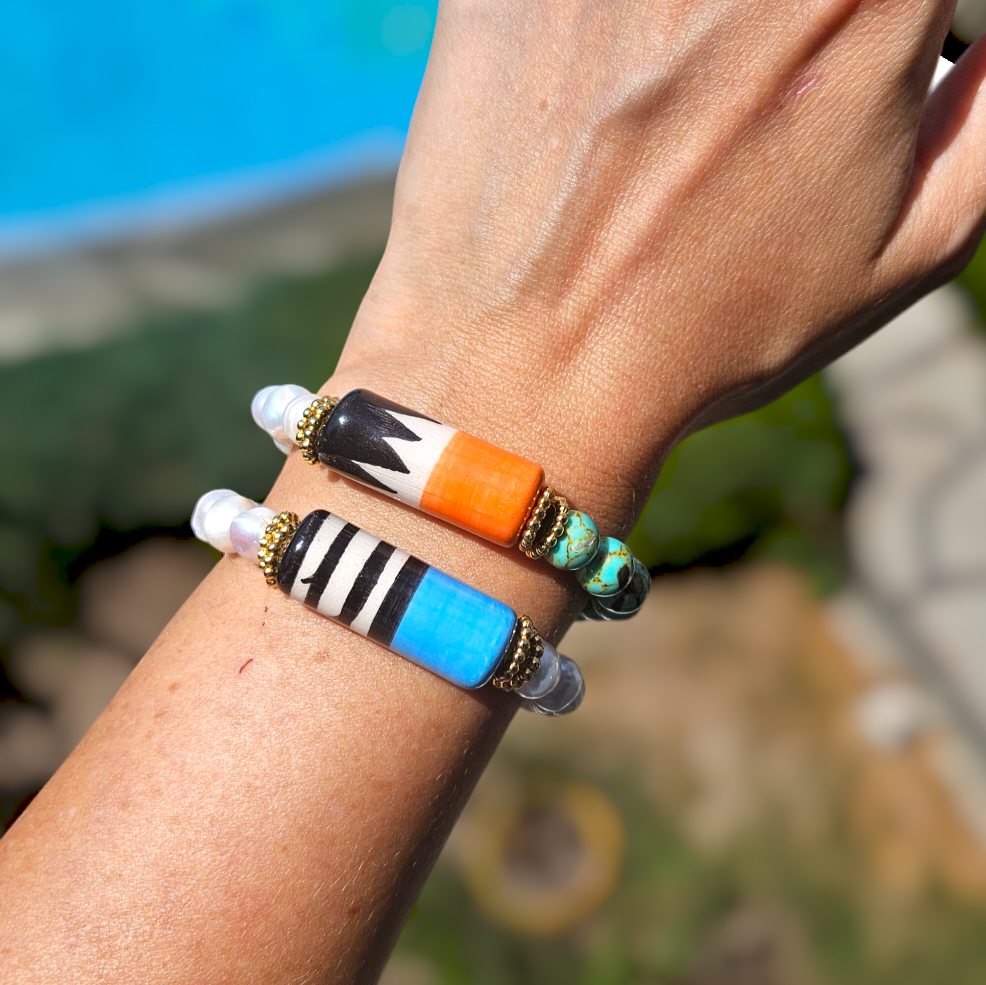 - Carnaval Bilezik gerçek tatlı su incileri ve varasit taşı ile yapılmıştır.