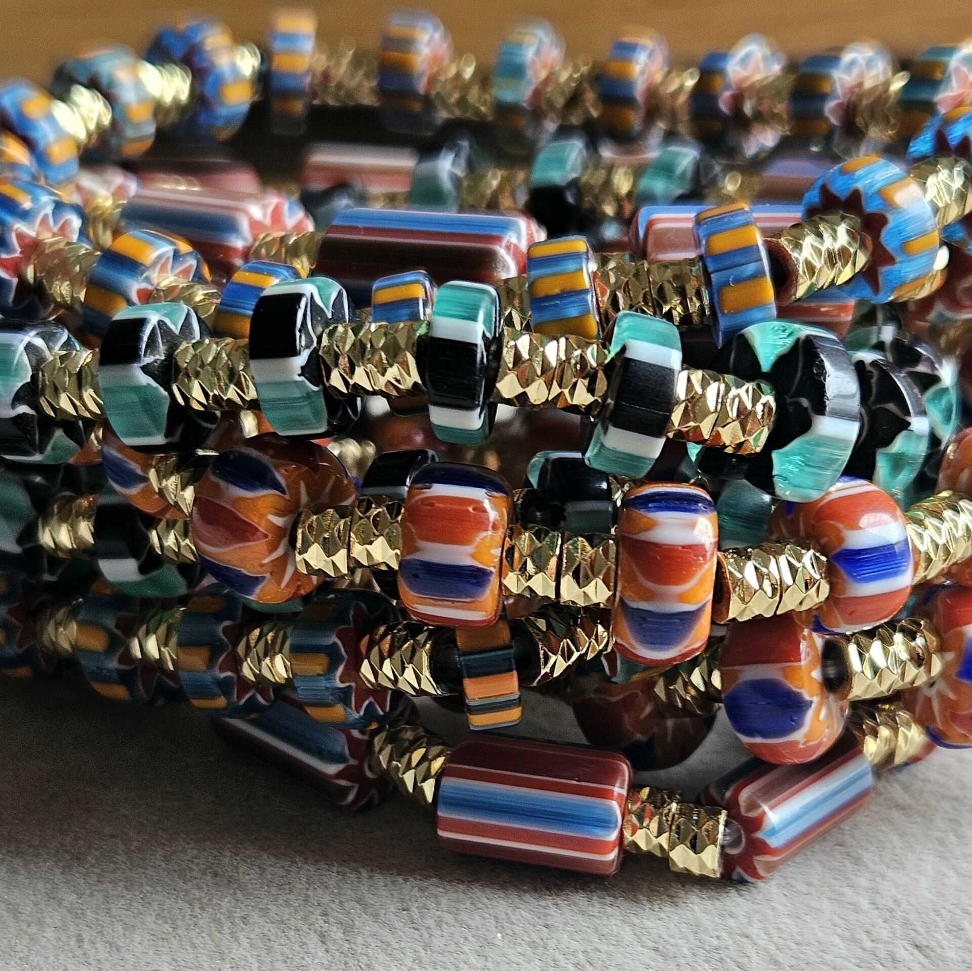 - Malzeme : Afrika Chevron cam boncuklar ve gold kaplama dorika boncuklar.