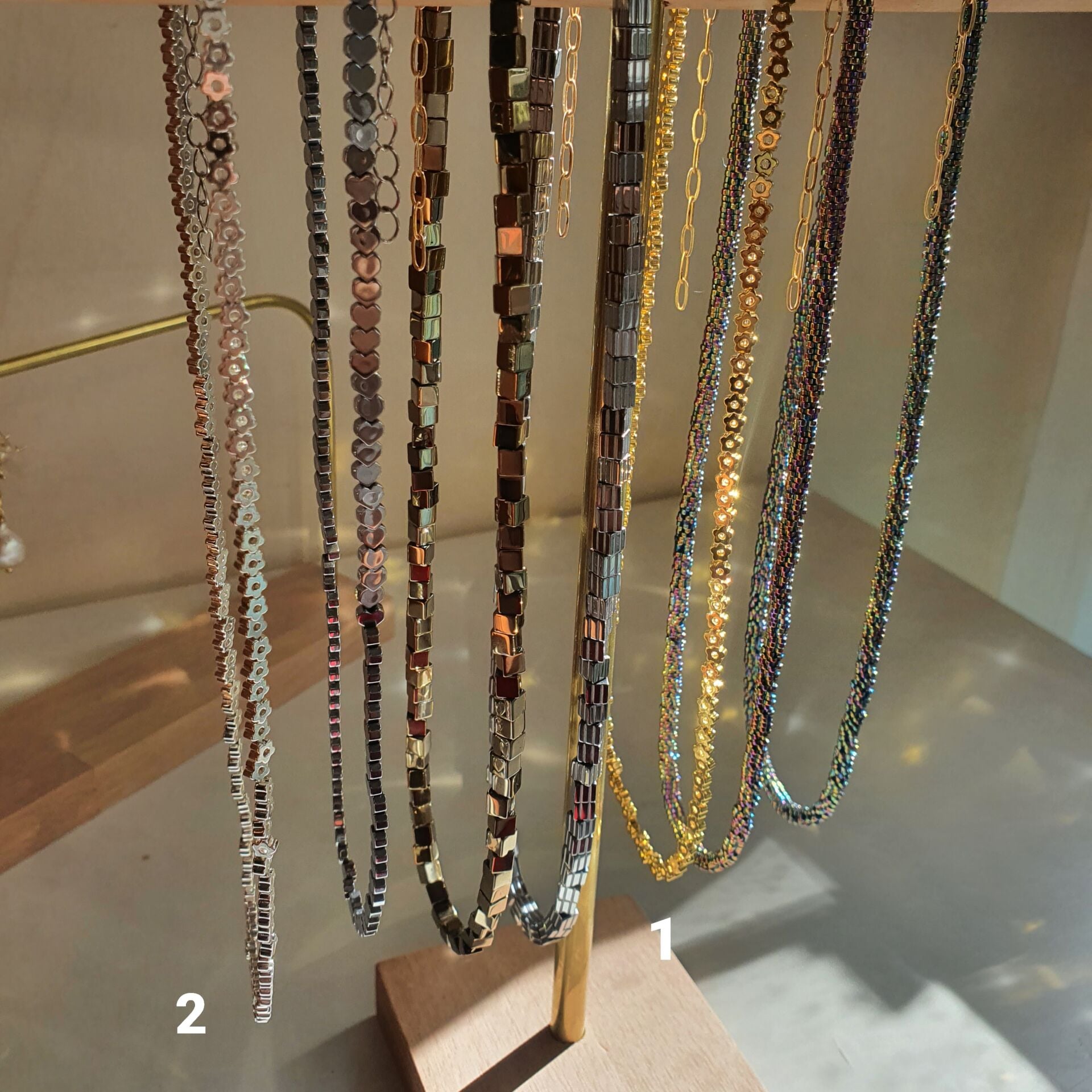 Gümüş ve altın renk kaplama olmak üzere 2 seçenekte çalışılmıştır. Tamamiyle Hematit doğal taşları ile yapılmıştır. Hematit taşları vücudunuzdaki negatif enerjinin uzaklaşmasına yardımcı olur. Uzun süre kullanım için kimyasal temasına dikkat edilmesi tavsiye edilir.