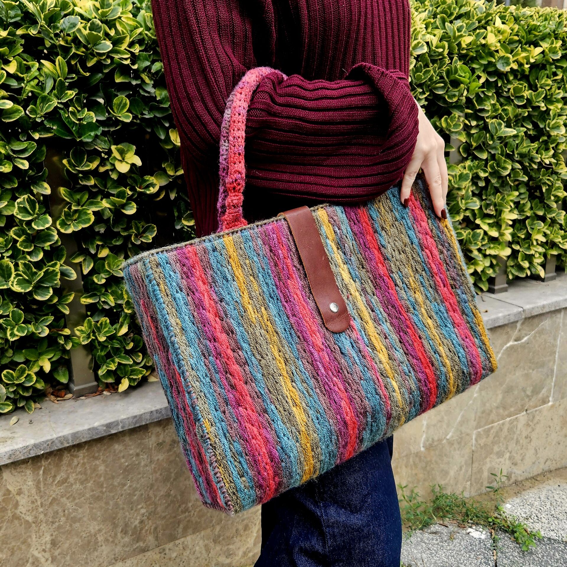 - Malzeme : Astarlı örgü çanta. El yapımıdır.