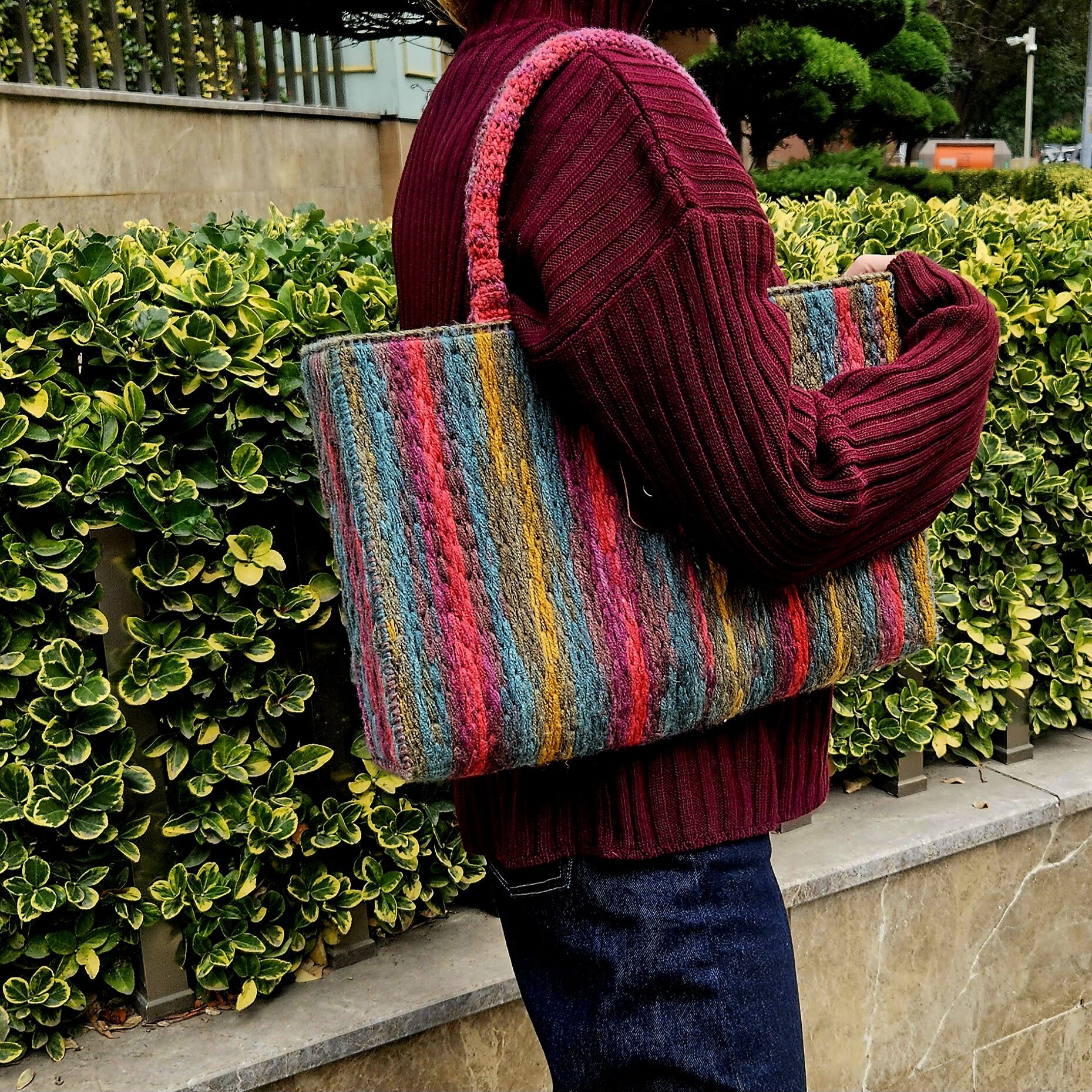 Çok Renkli Yünlü Örgü Omuz Çantası