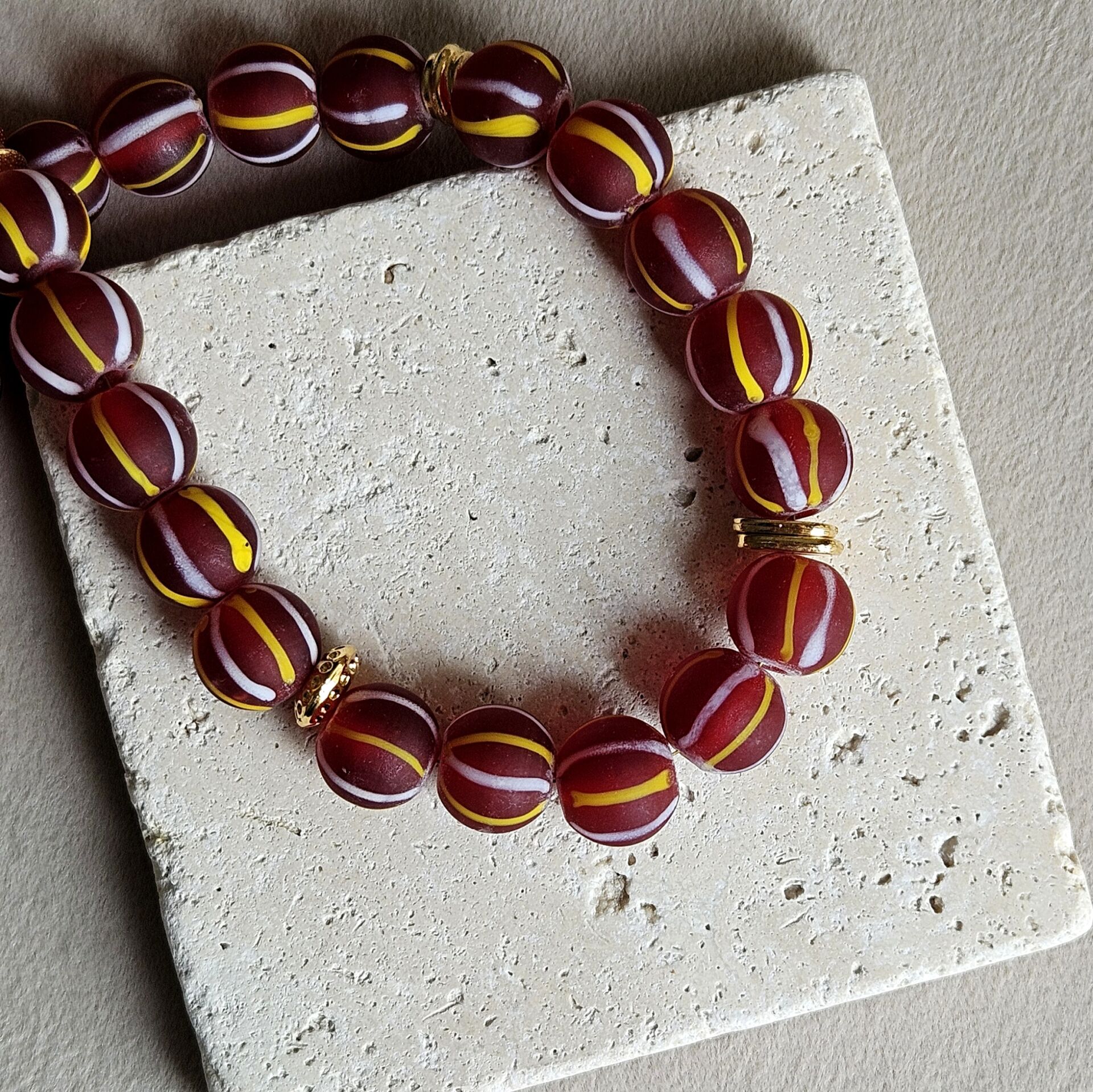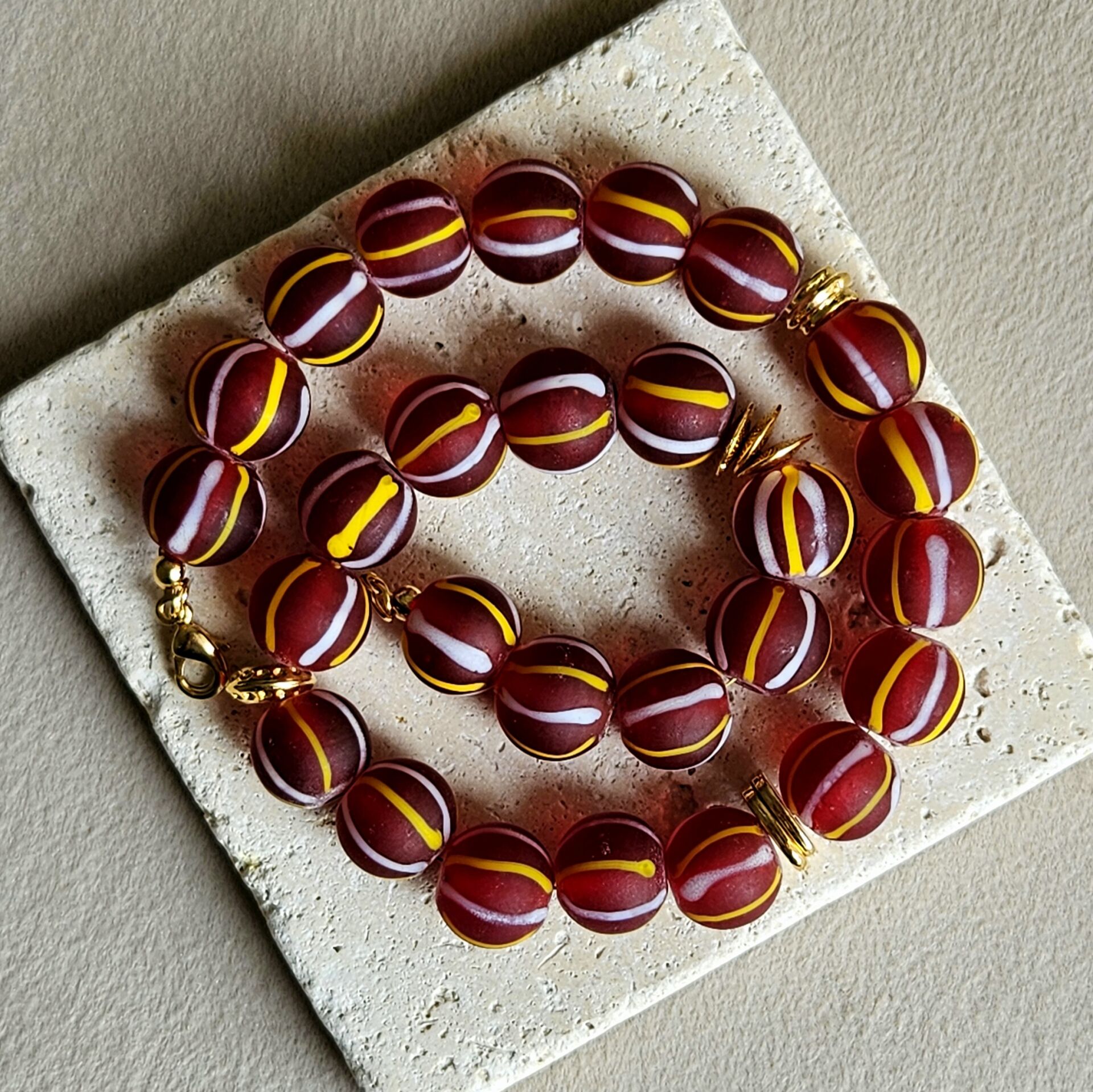 - Malzeme : Cam ve altın kaplama disk boncuklar.