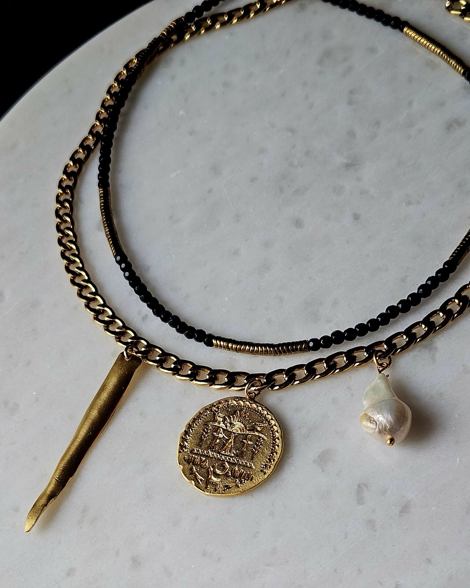 - Malzeme : Gold hematit ve spinel doğal taş.