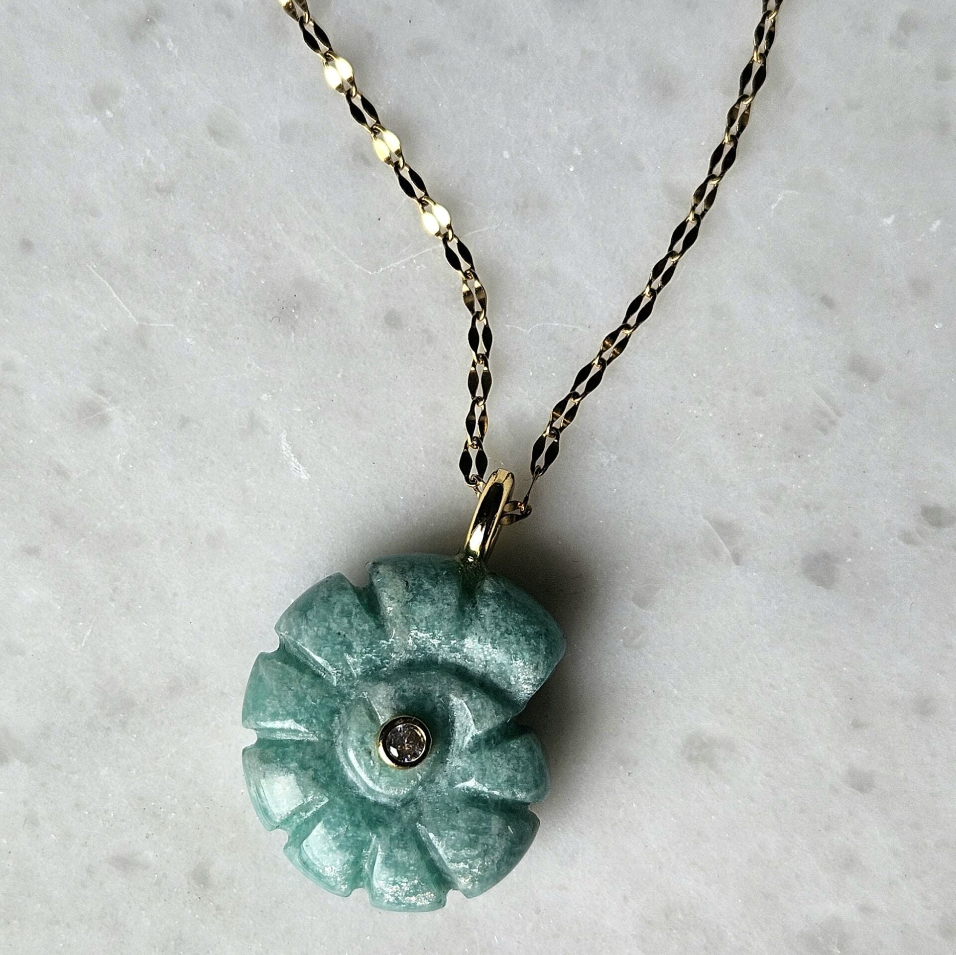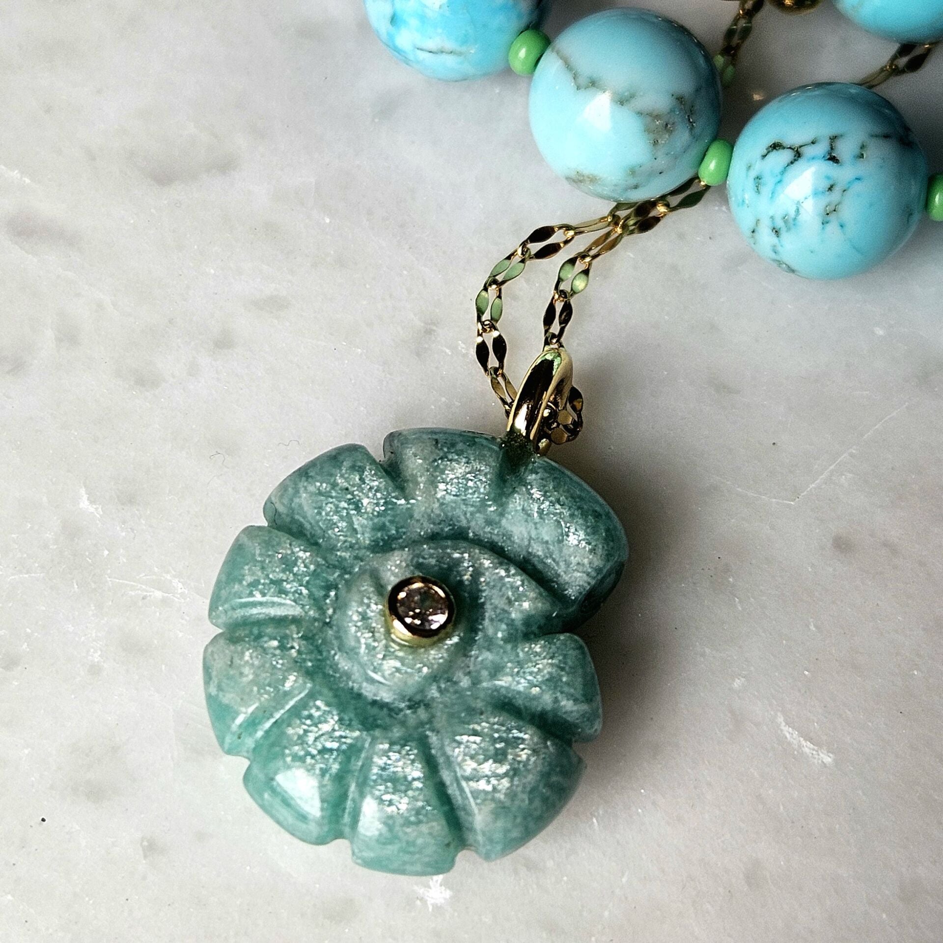 - Malzeme : Amazonit doğal taş ve çelik zincir.