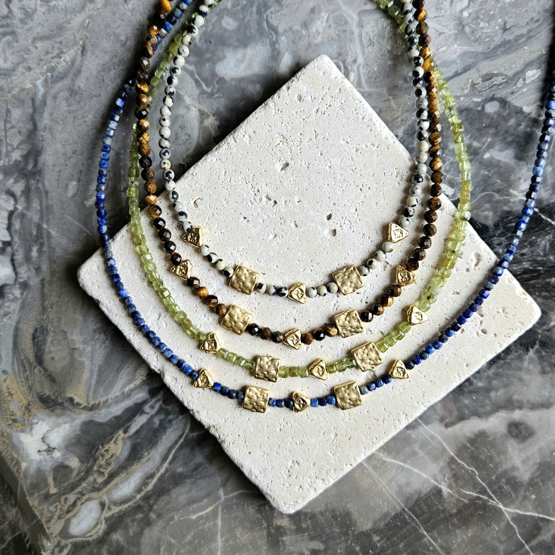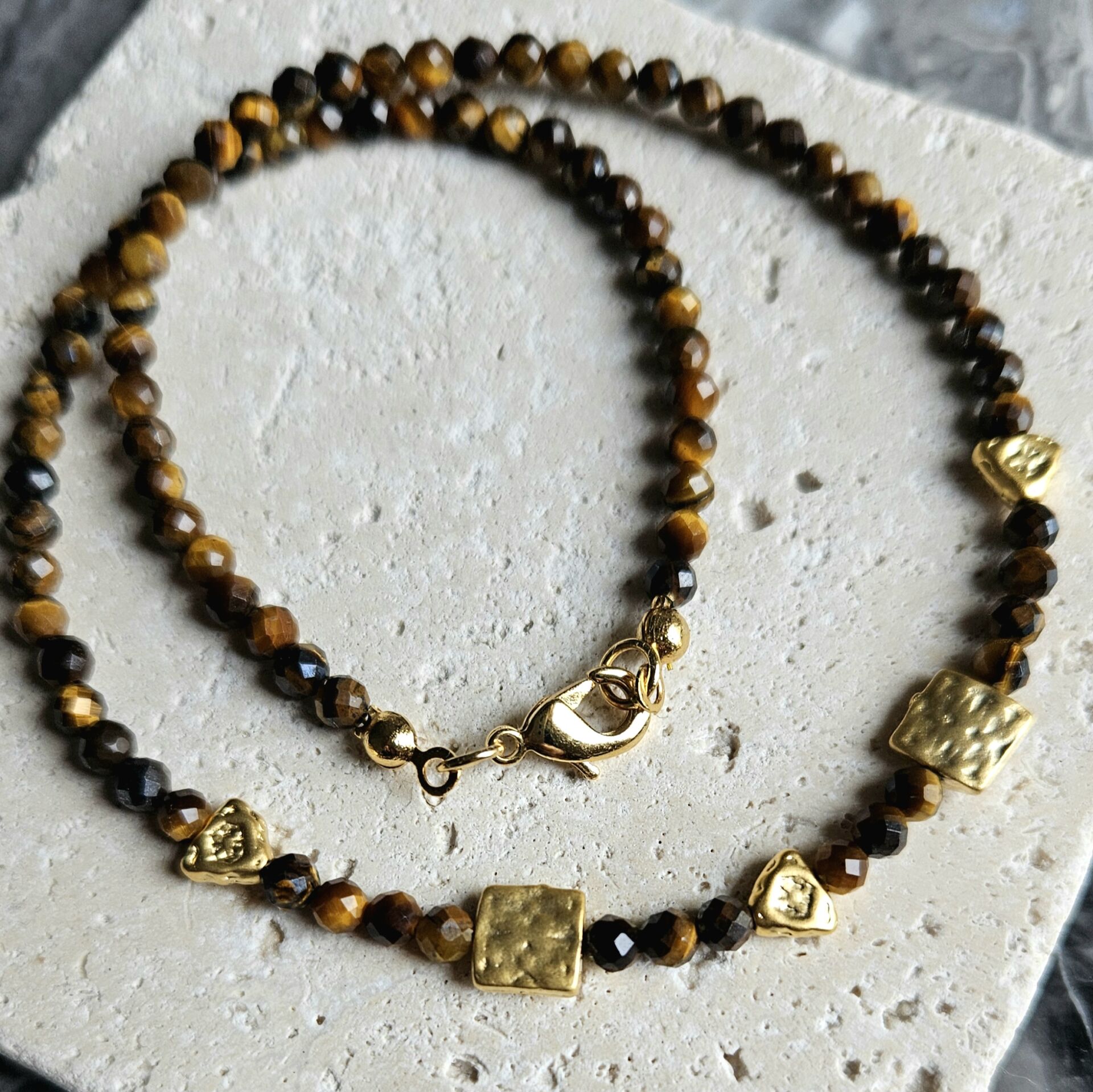 - Malzeme : Kaplangözü doğal taş, altın kaplama mat pirinç figürler.