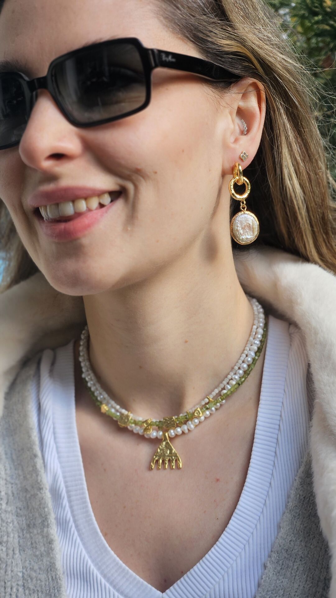 - Malzeme : Peridot doğal taş, altın kaplama mat pirinç figürler.