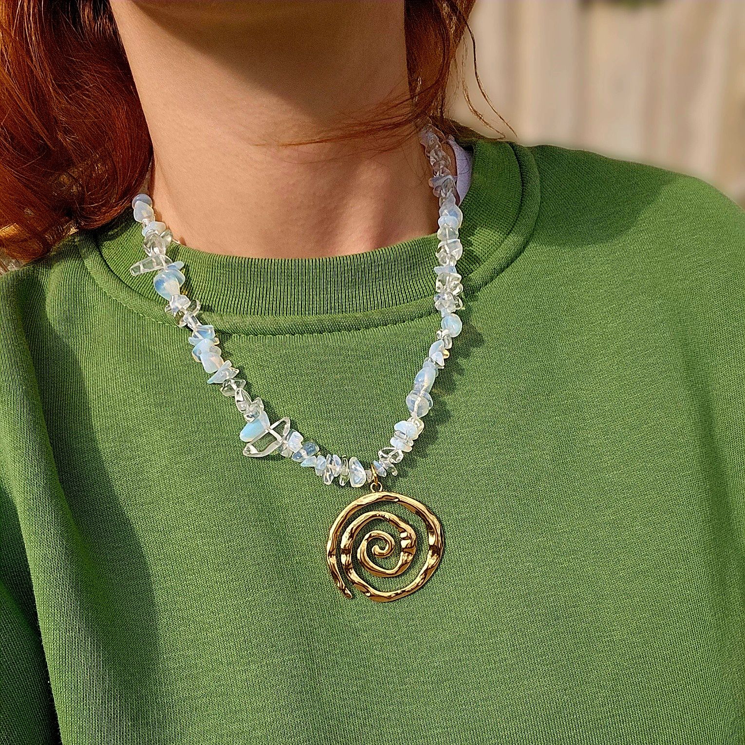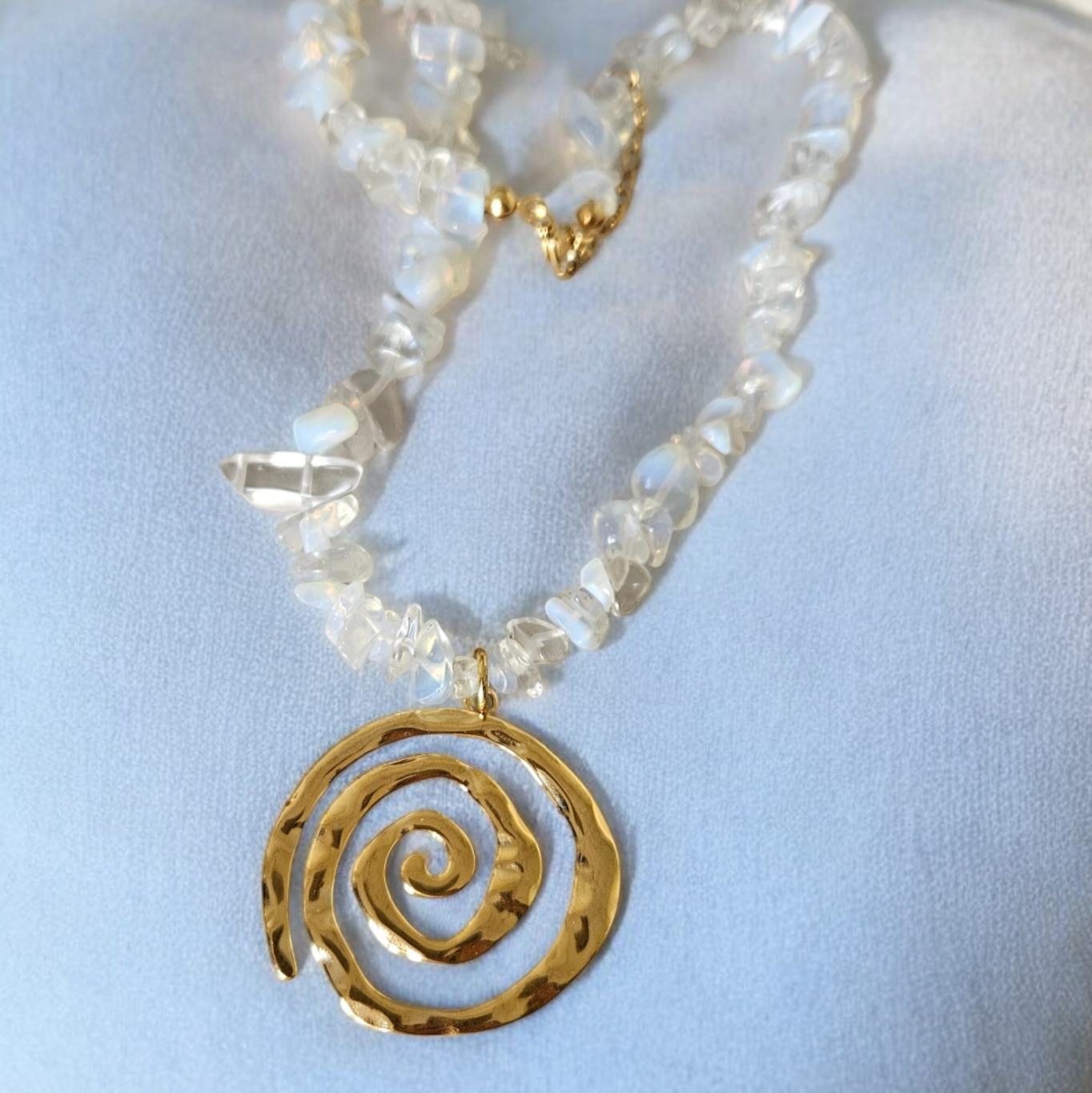 - Ethereal Kolye kırık opal taşlar ile yapılmıştır.
