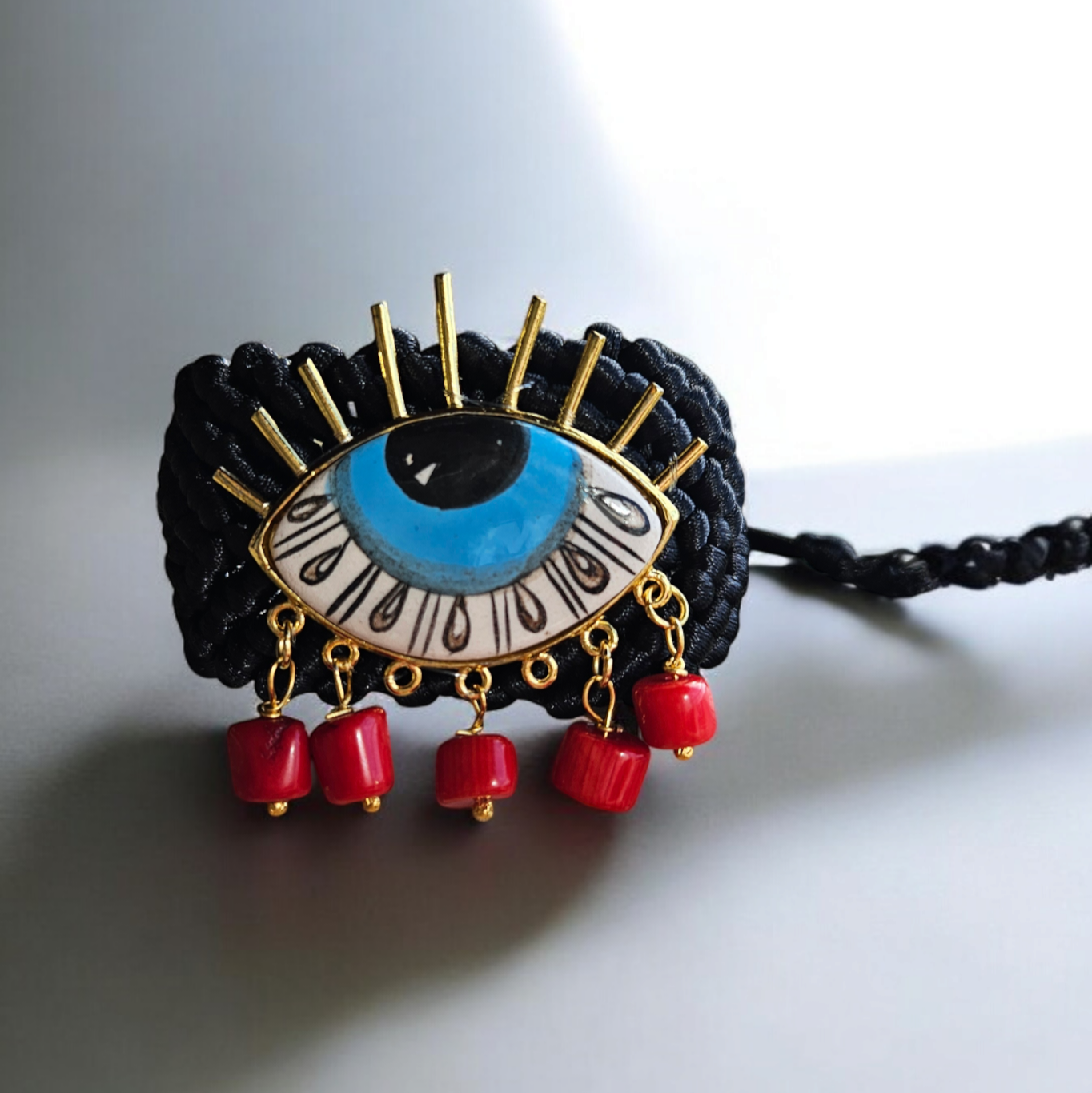 - Malzeme : El yapımı seramik ve örme floş ip. Mercan doğal taş. Asansör kapamadır.