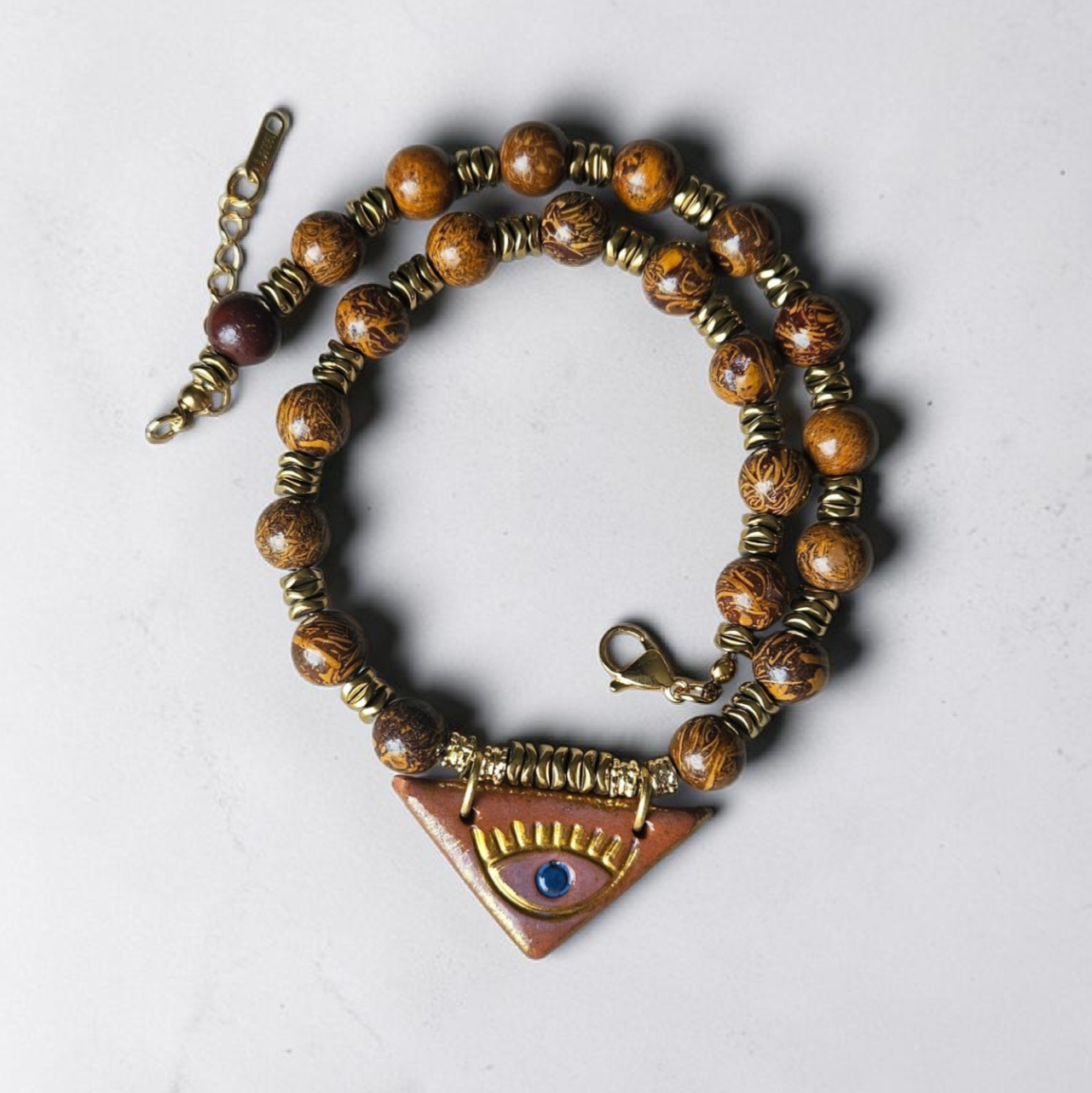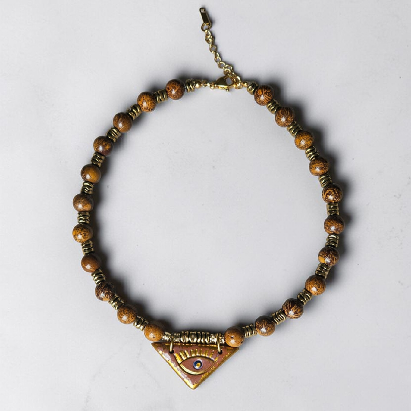 - Malzeme : Gaze doğal taş kolye, jasper, hematit ve seramik ile yapılmıştır.