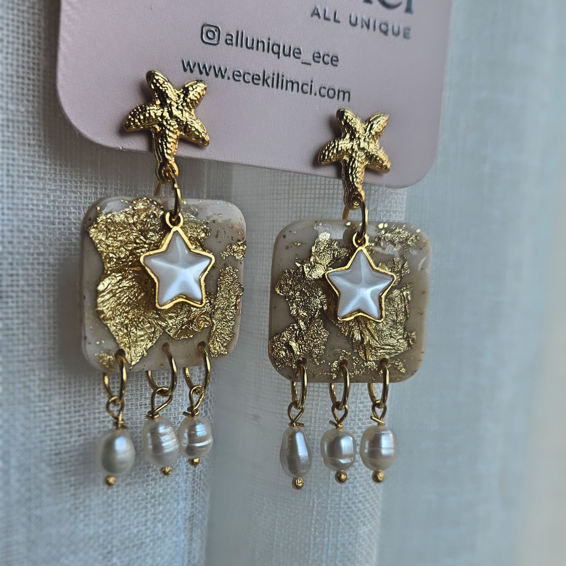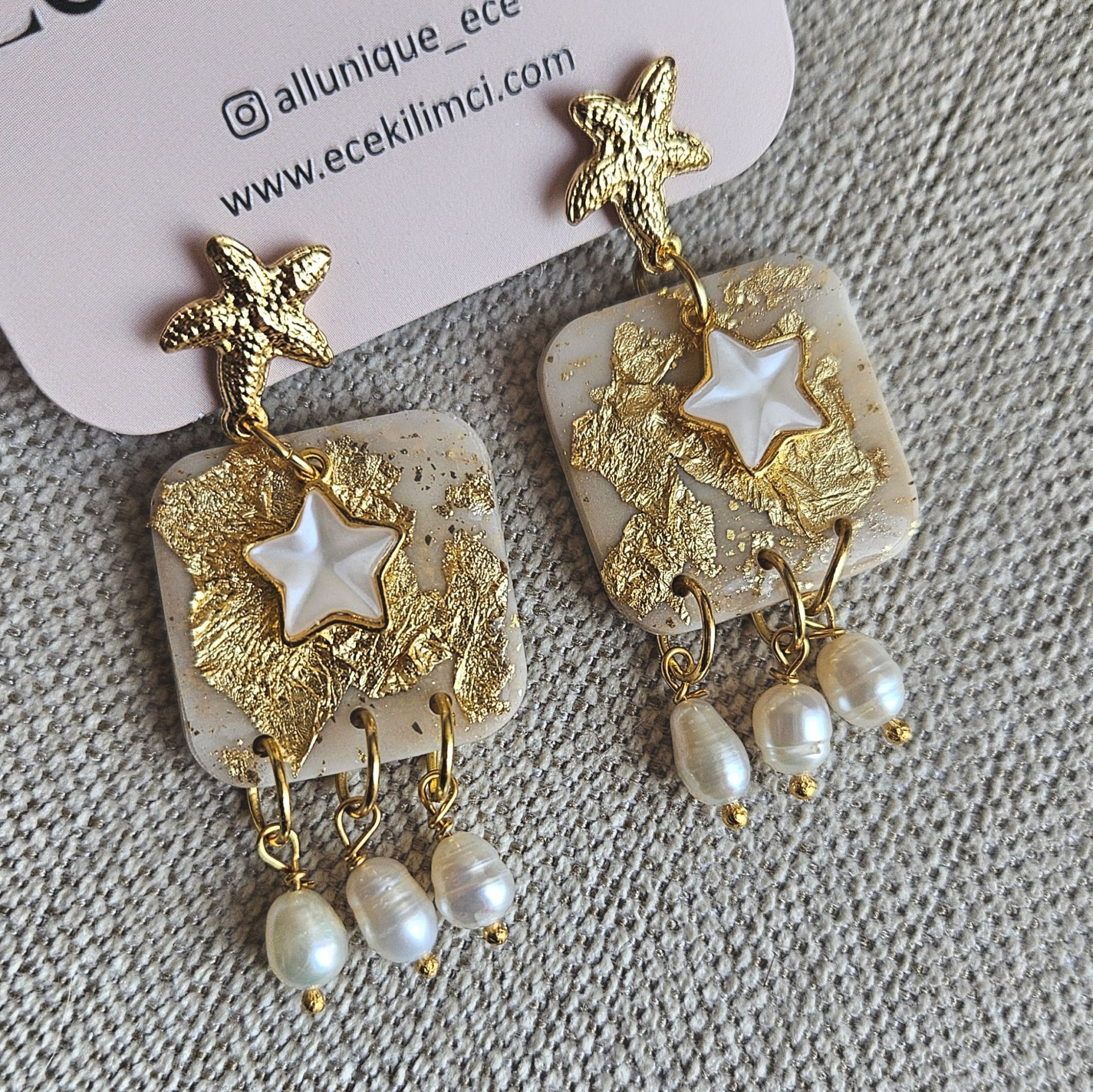 - Glam Küpe, polimer kil ile özenle elde şekillendirilip ve yaldız ile süslenmiştir.