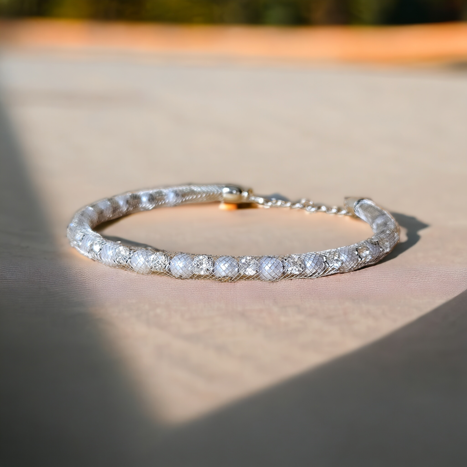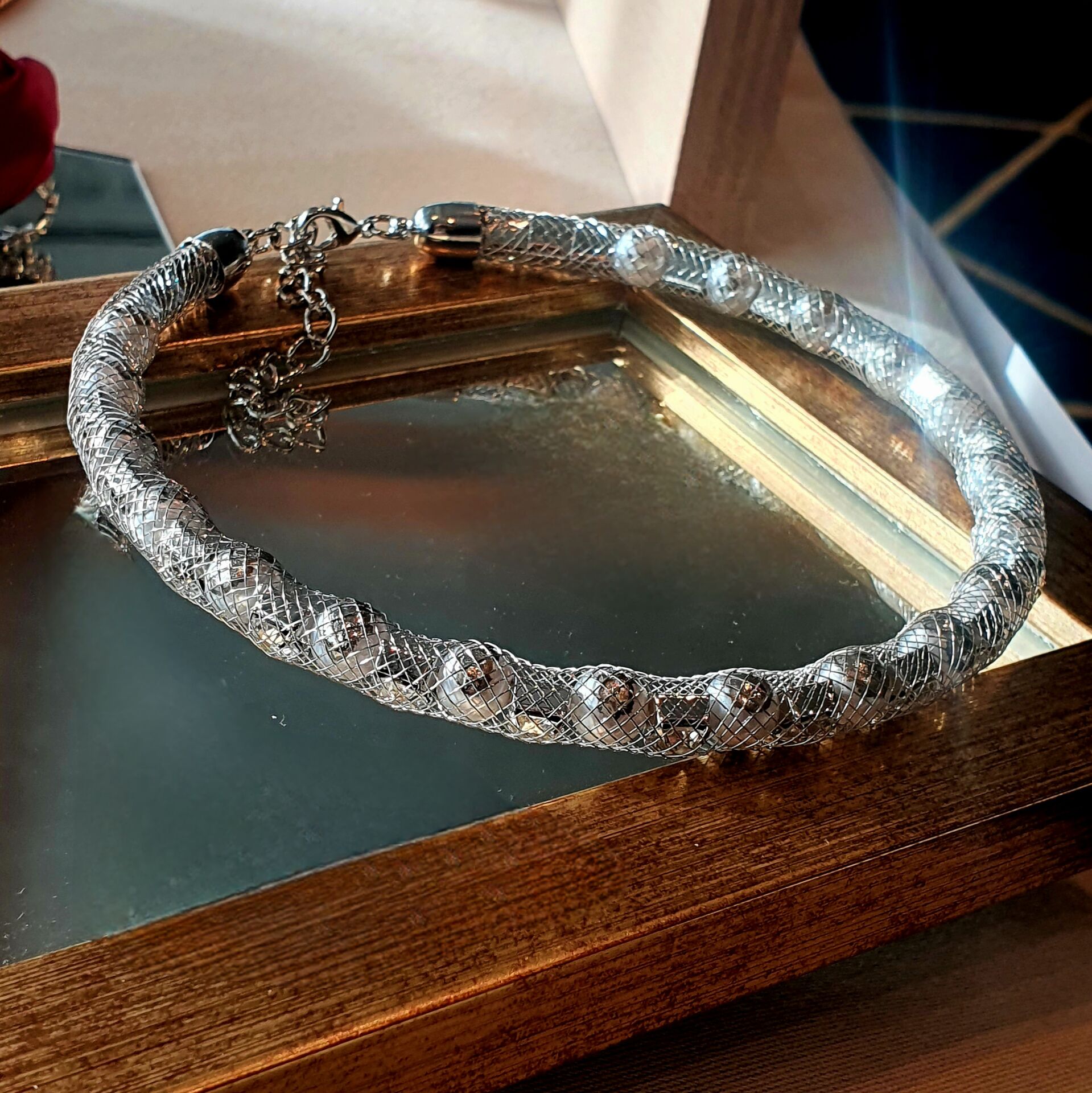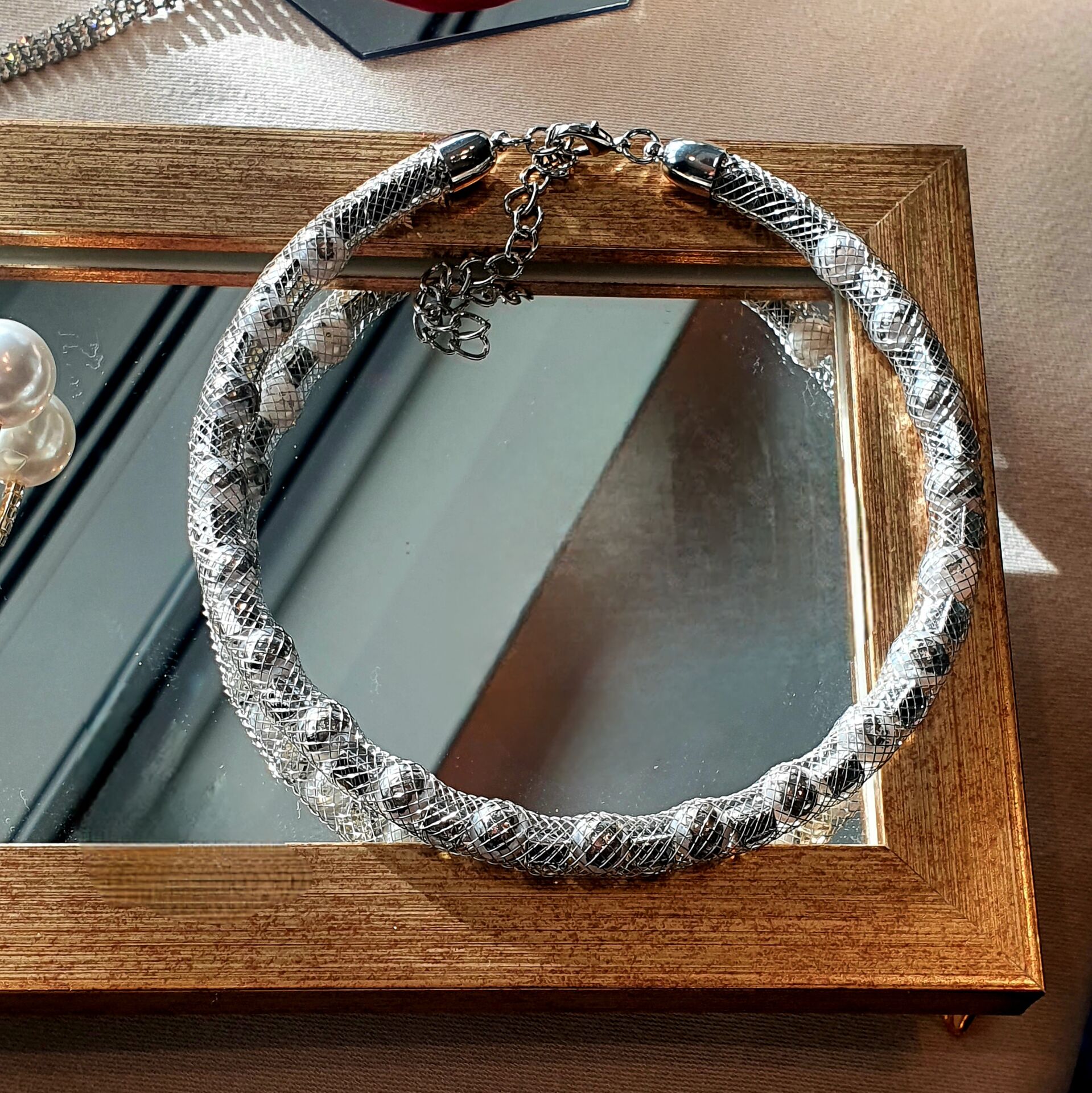 - Gümüş renkli tel ve incilerle yapılmıştır.