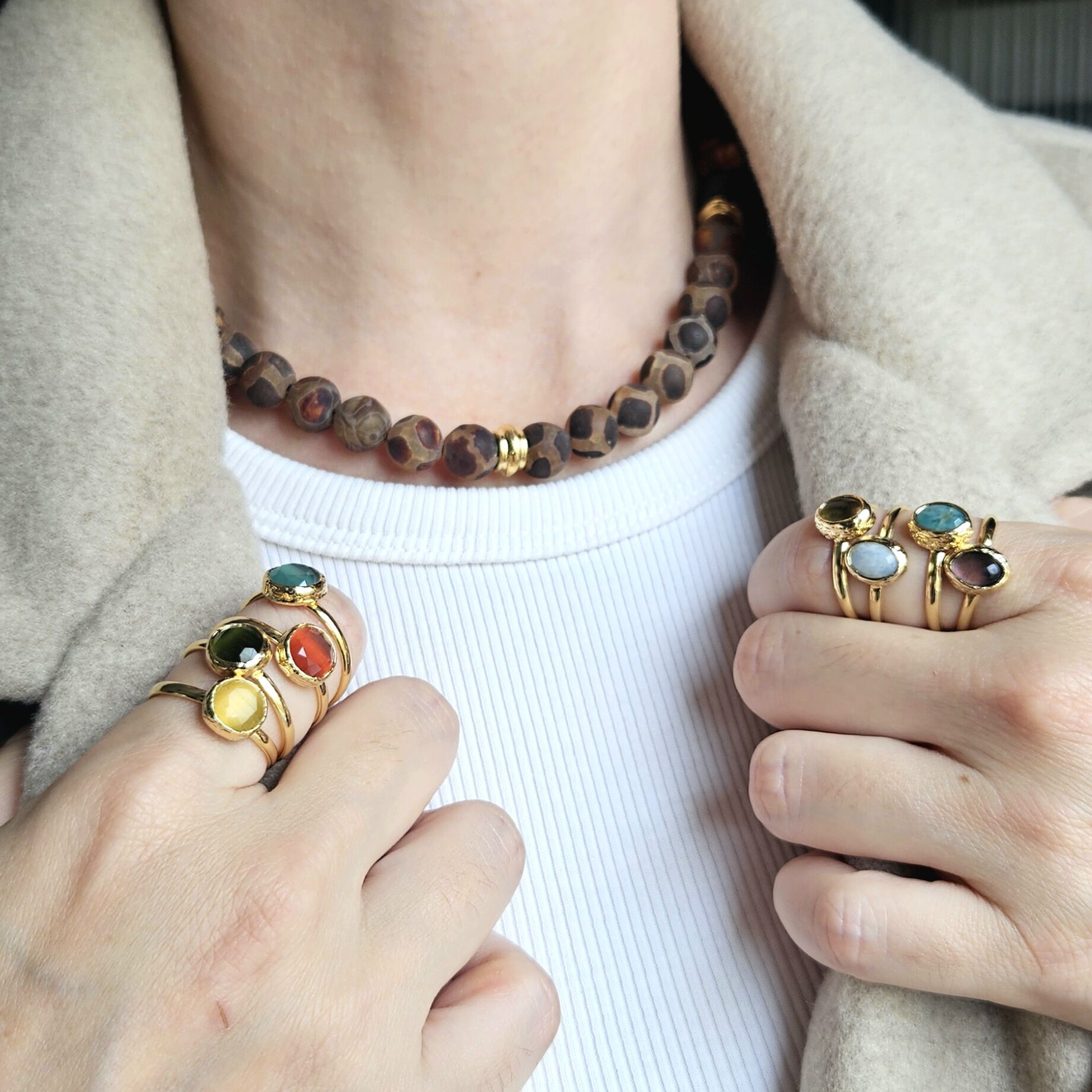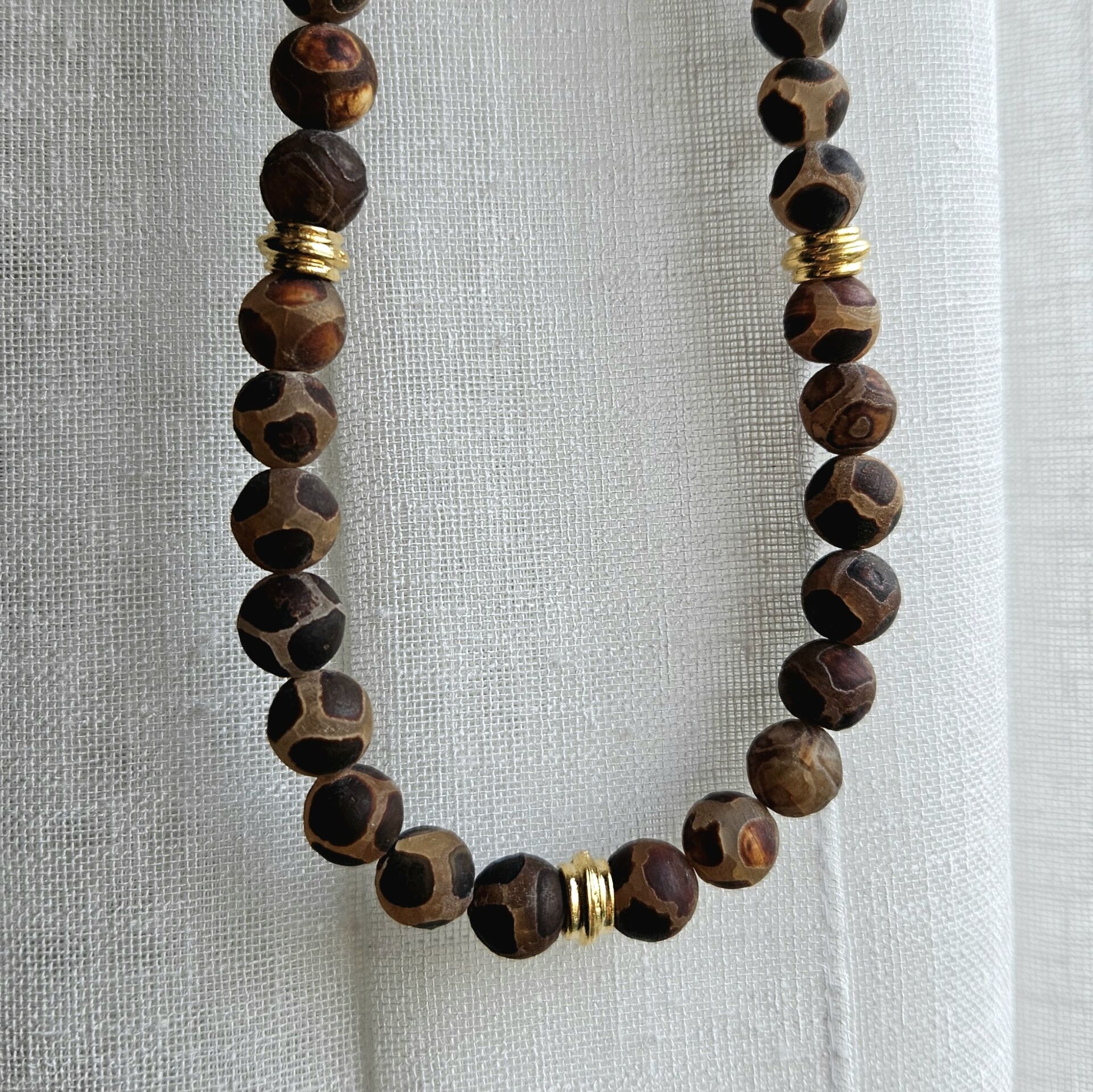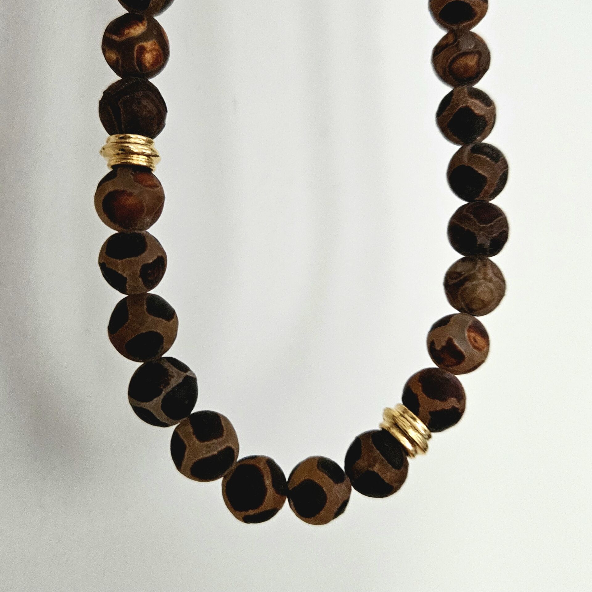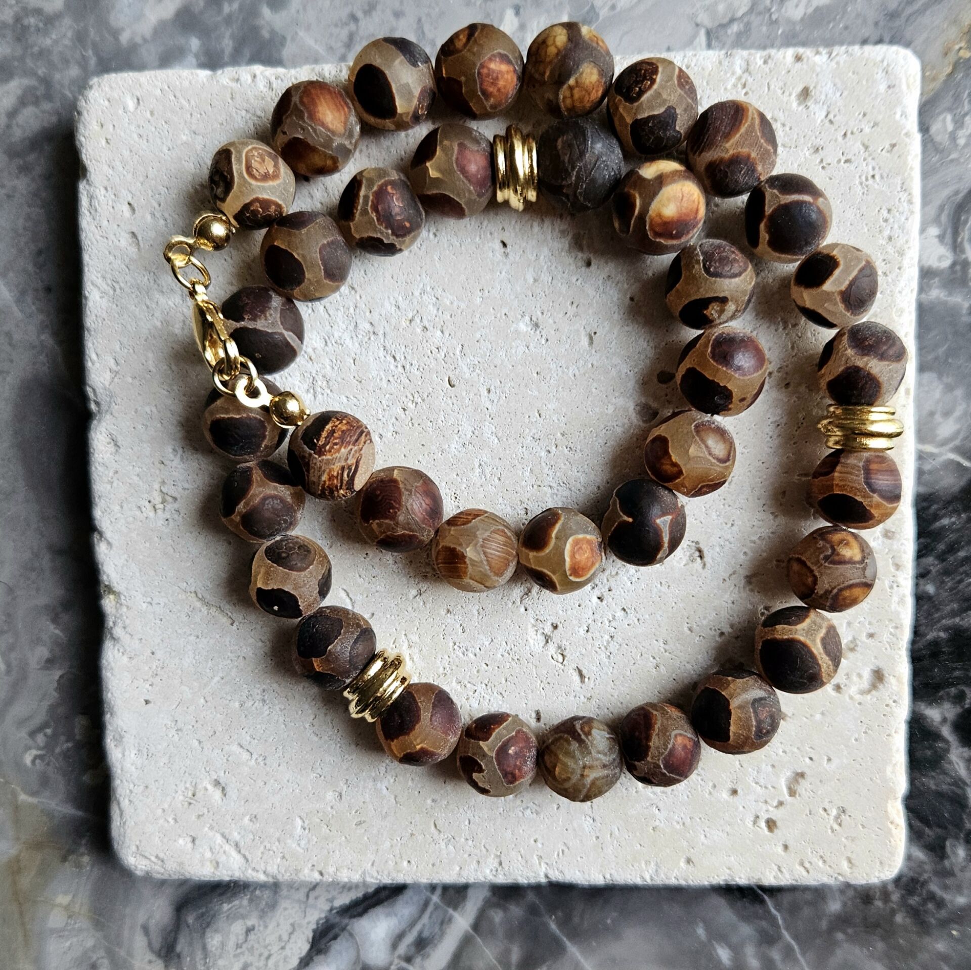 - Malzeme : Tibet akik ve altın kaplama disk boncuklar.