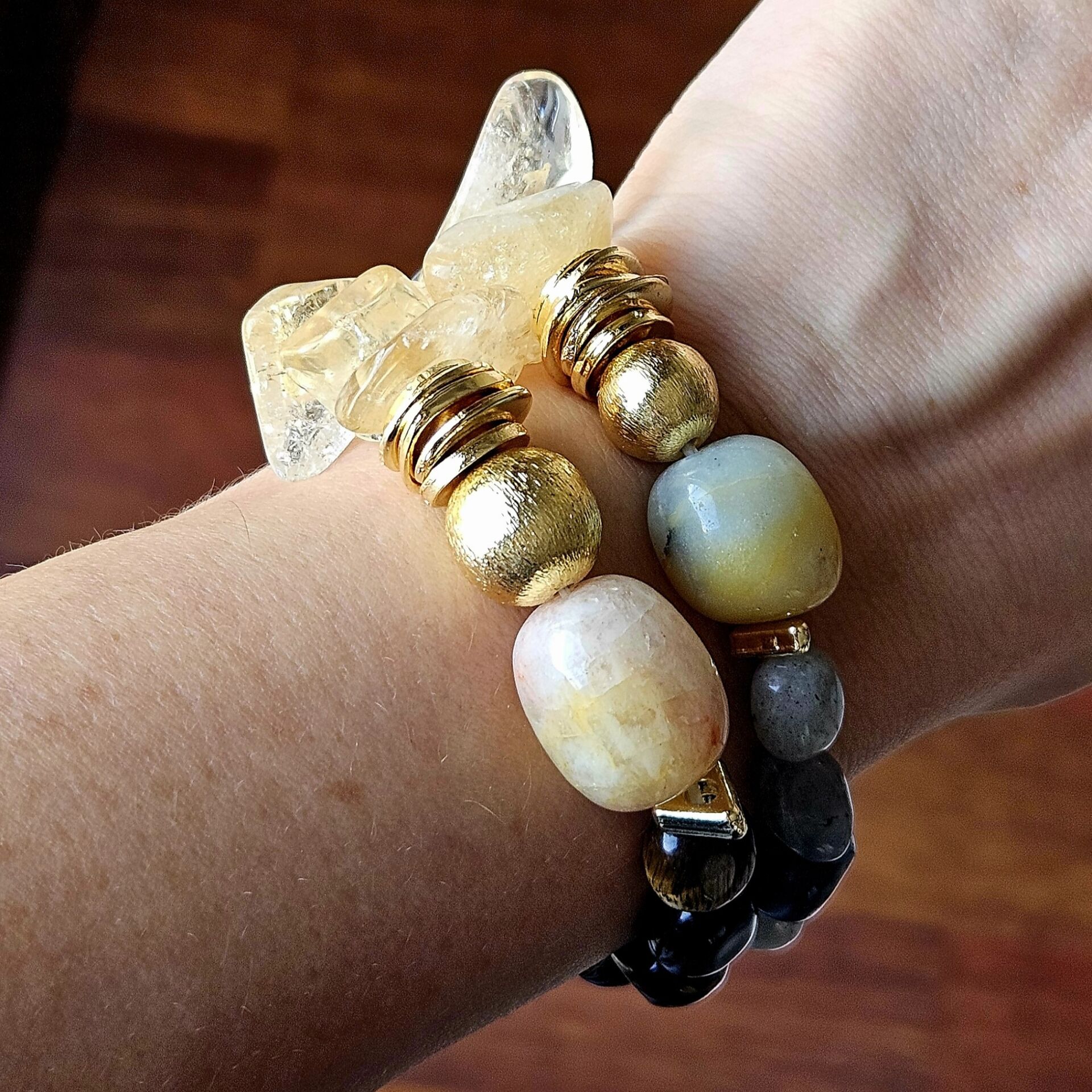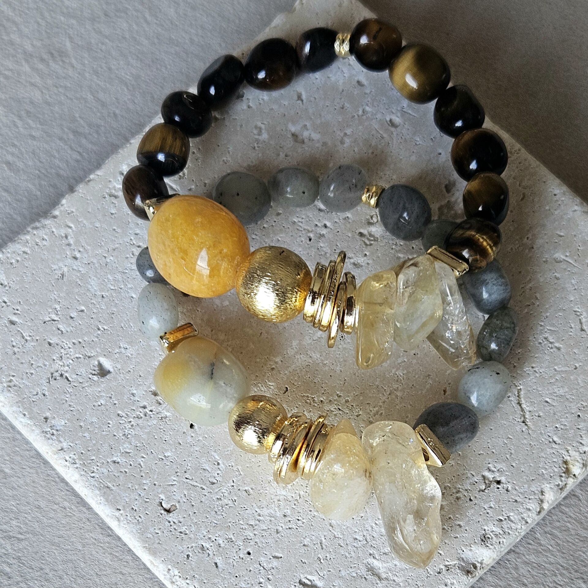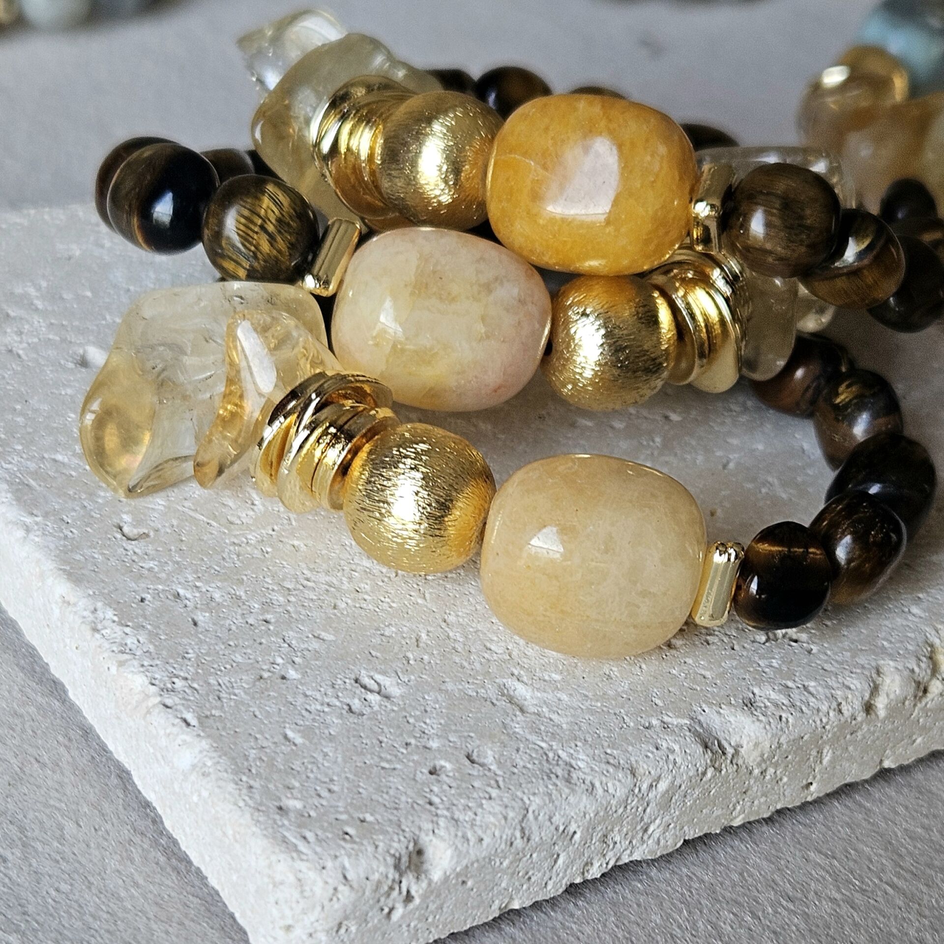- Malzeme : akik, kaplangözü ve sitrin doğal taş. Altın kaplama aparatlar.