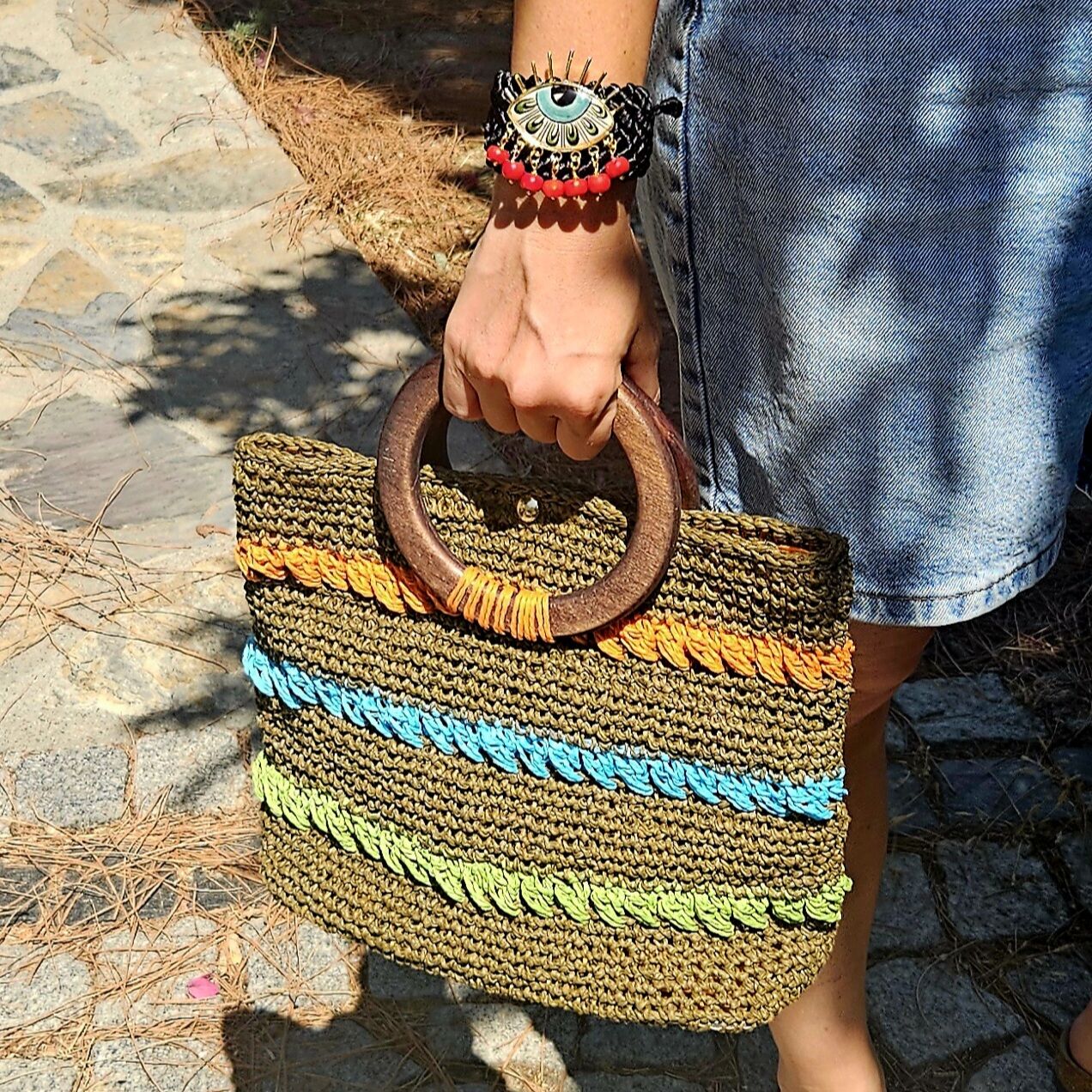 - Malzeme : Kağıt ip ile elde yapılmıştır. Astarlıdır ve çıtçıt kapamalıdır.