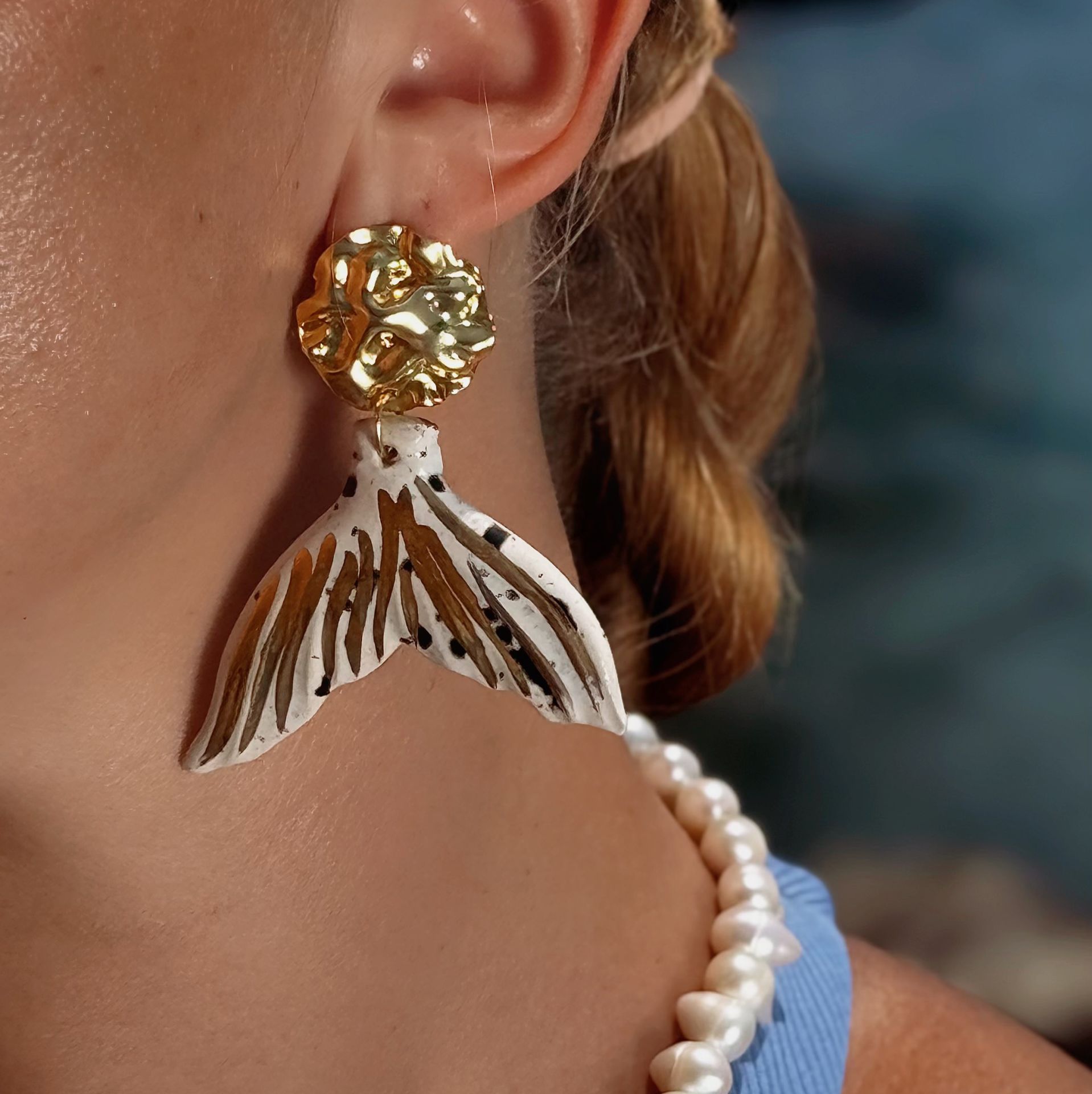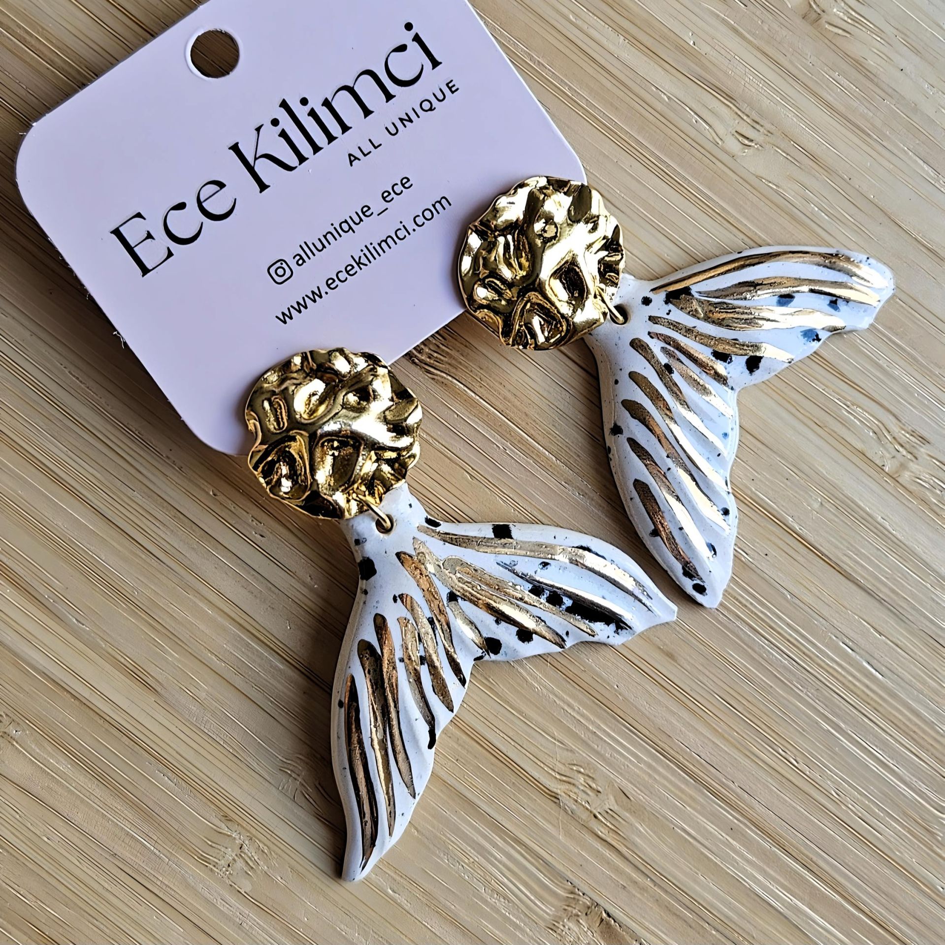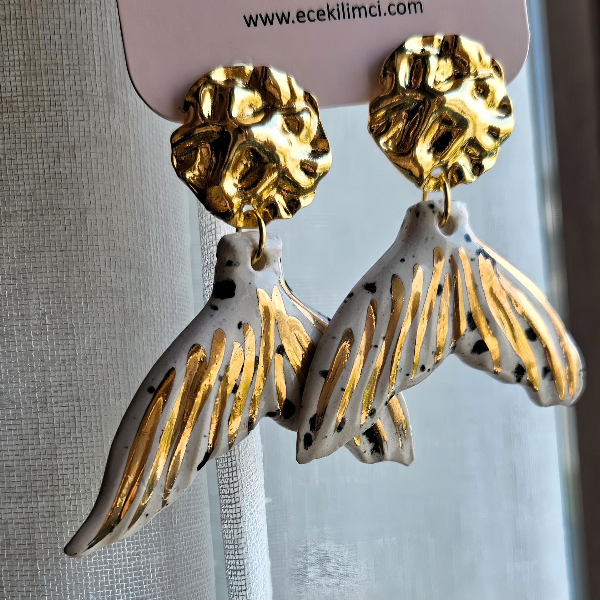 - Malzeme : pirinç üzeri altın kaplama küpe aparatı, el yapımı seramik.