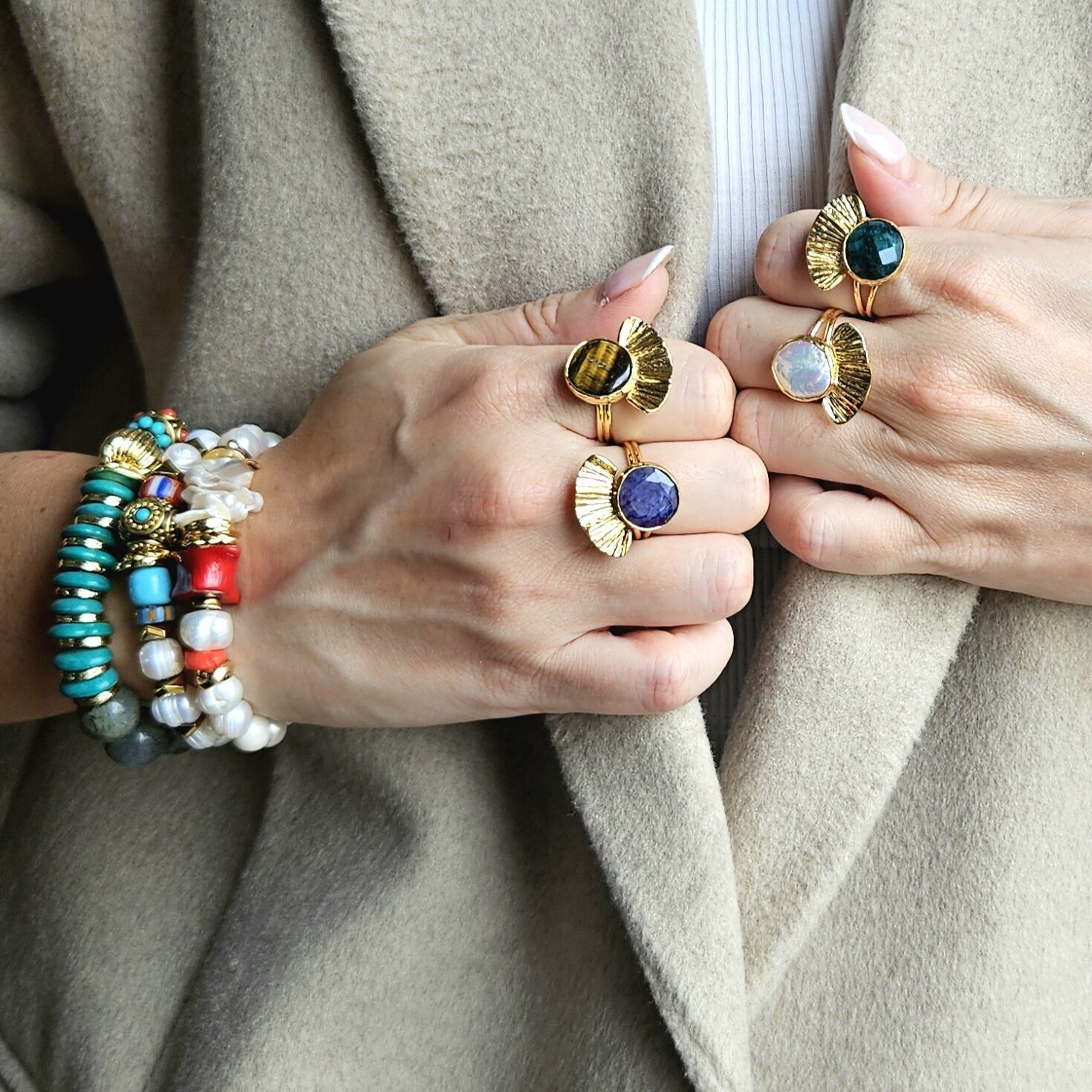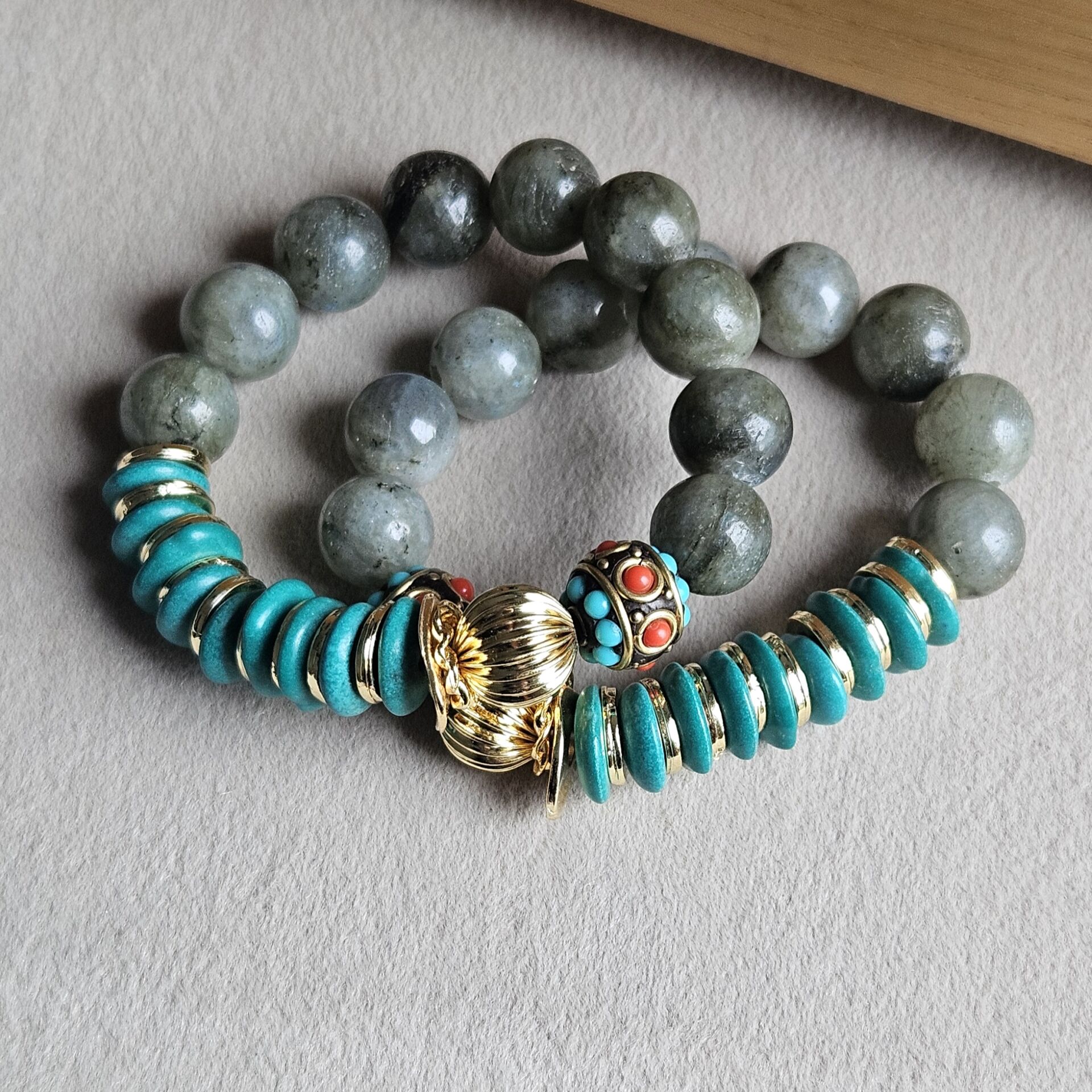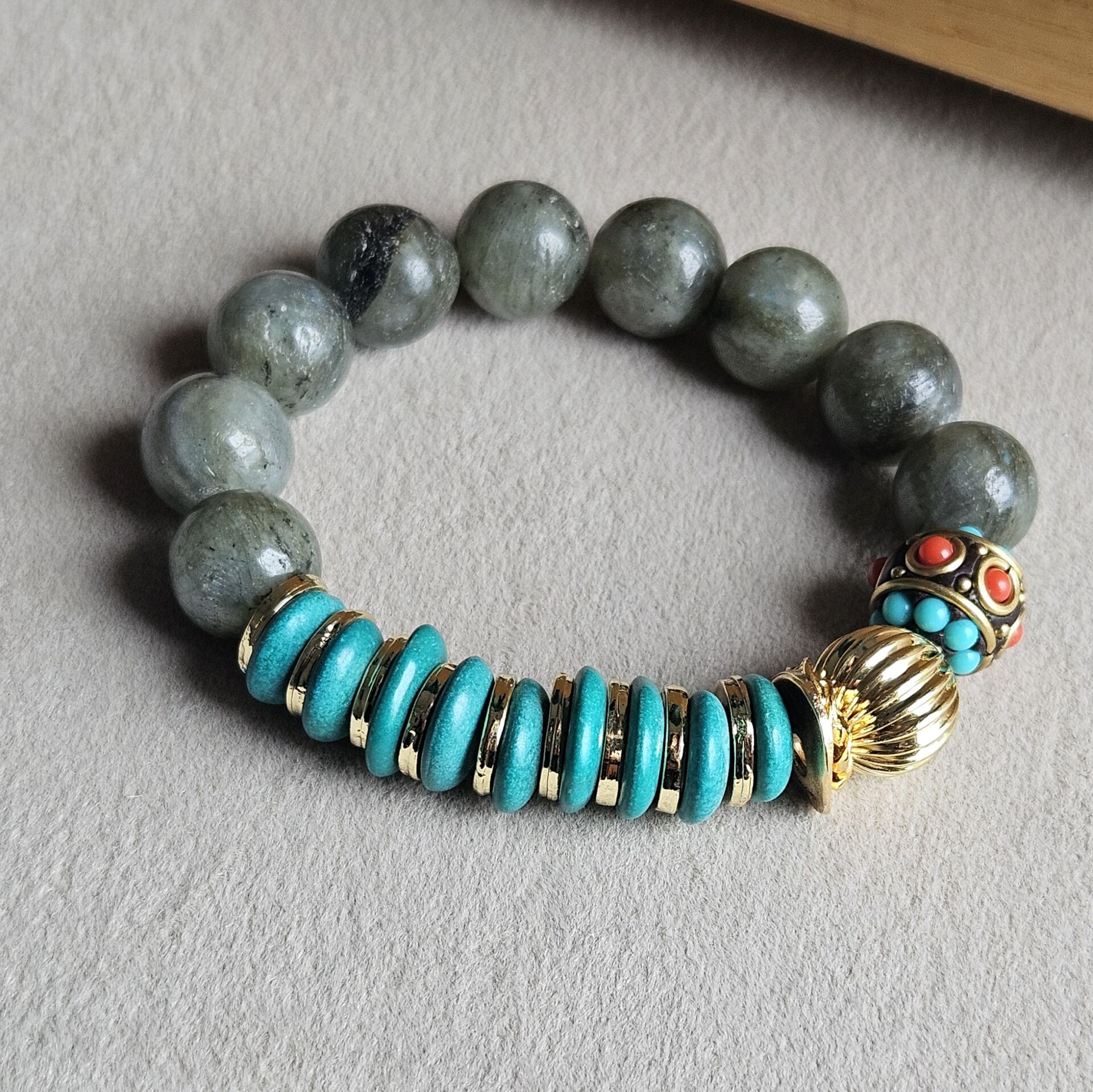 - Malzeme : Labrodorit, Turkuaz ve Nepal taş.