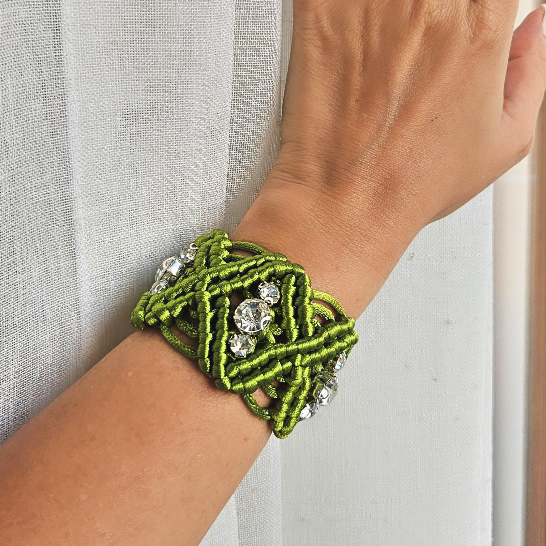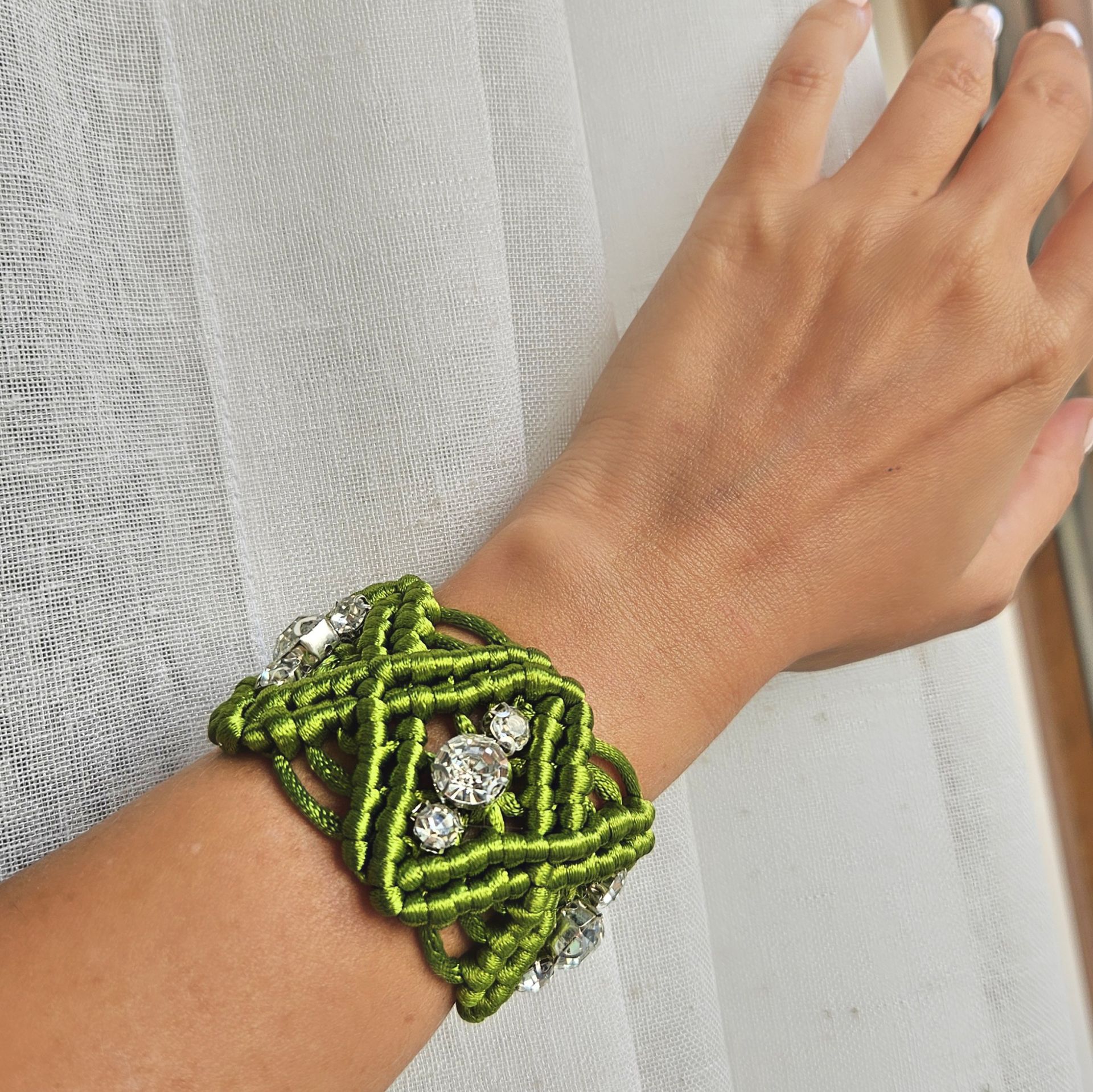- Let's Shine bileklikler örme süet deri üzerine swarovski kasalı taşlar dikilerek yapılmıştır.