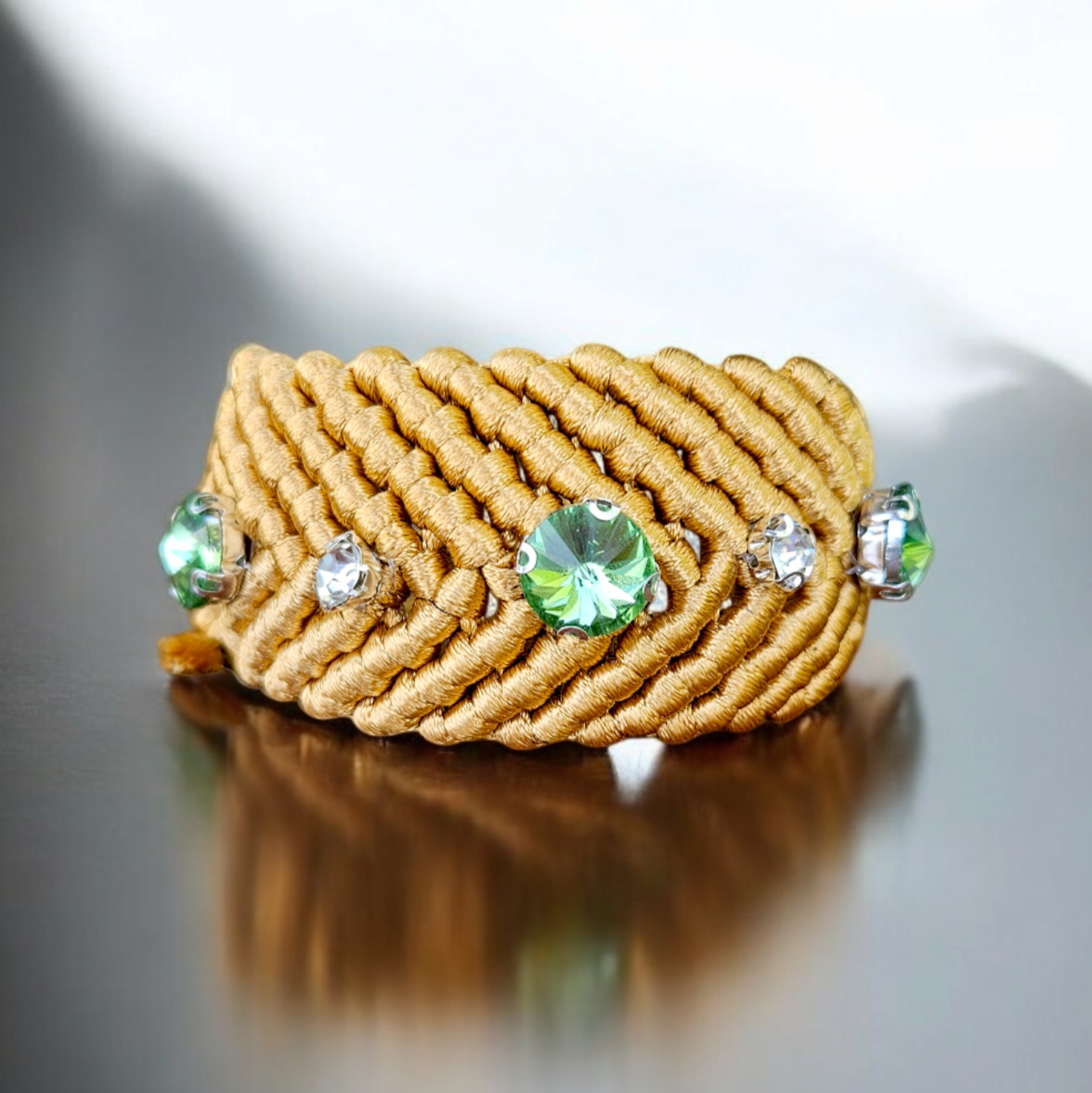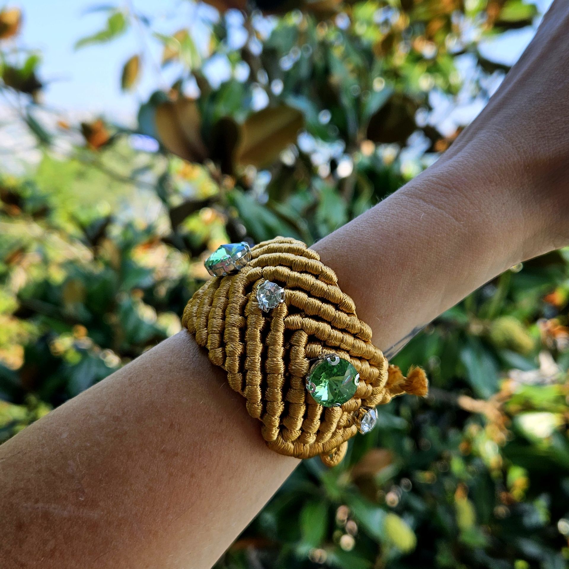 - Let's Shine bileklikler örme süet deri üzerine swarovski kasalı taşlar dikilerek yapılmıştır.