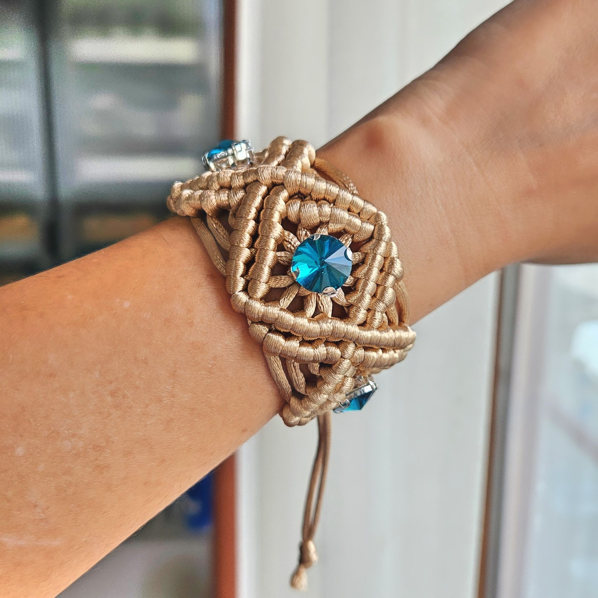 - Let's Shine bileklikler örme süet deri üzerine swarovski kasalı taşlar dikilerek yapılmıştır.