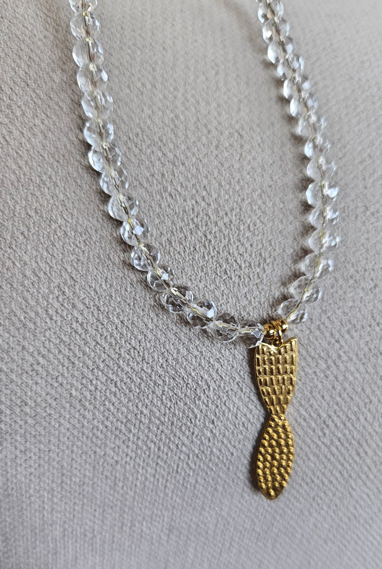 - Malzeme : Kristal kuvars doğal taşve gold balık figürü.