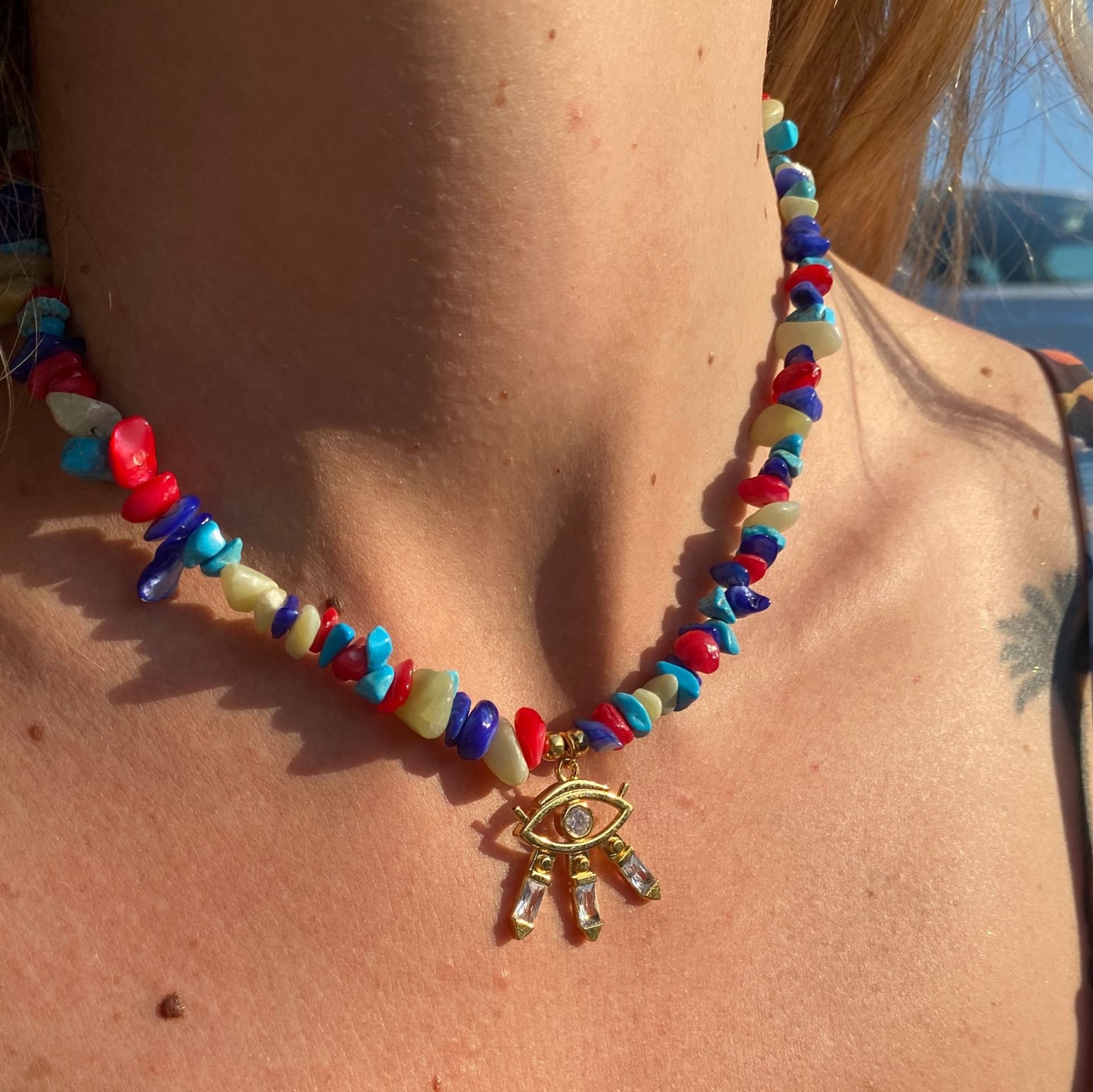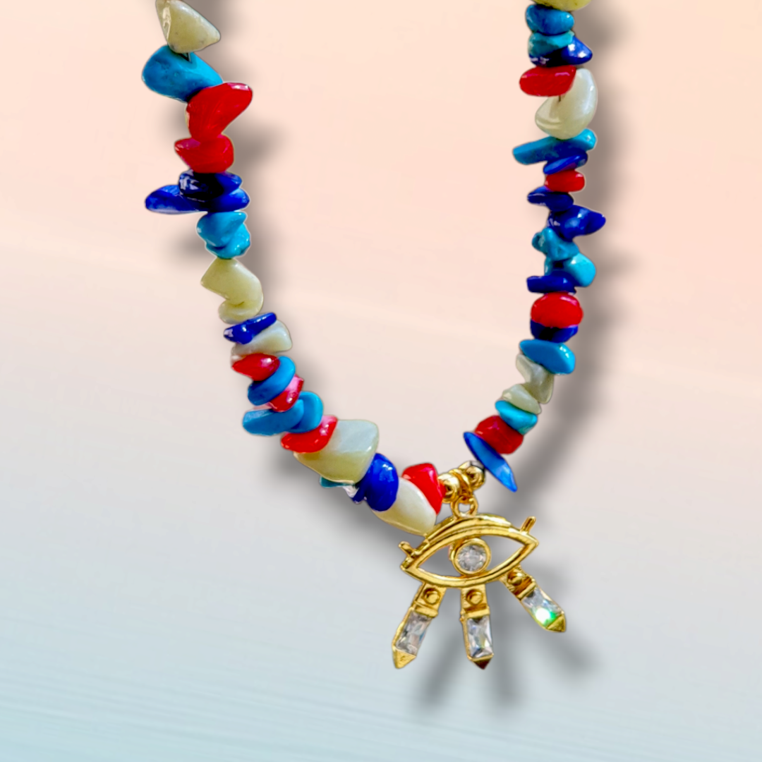 Magic kolye varasit, turkuaz ve renkli sedeflerle yapılmıştır. Uzun süre kullanım için kimyasal temasına dikkat edilmesi tavsiye edilir.