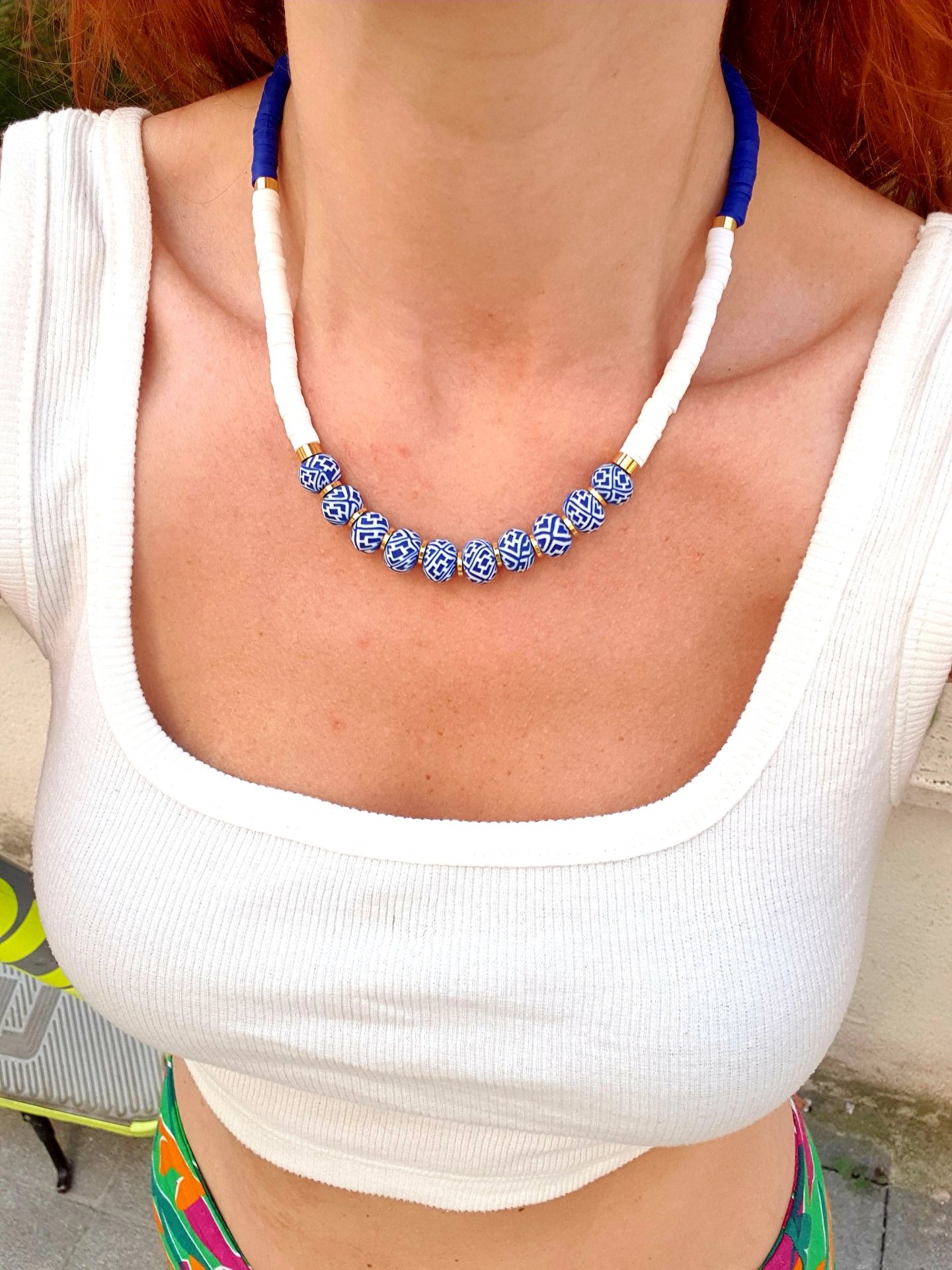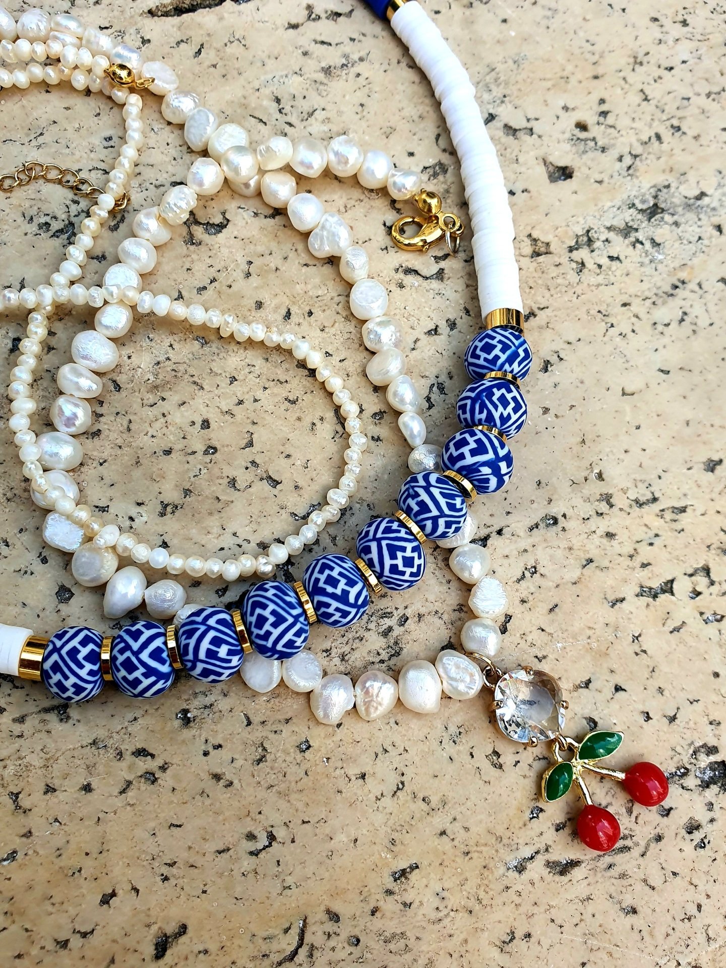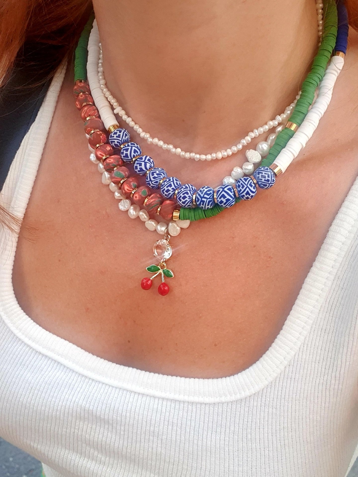 Marrakesh kolye fimo boncuklar ve altın kaplama ara taşlar ile yapılmıştır. Uzun süreli kullanım için kimyasal temasına dikkat edilmesi tavsiye edilir.