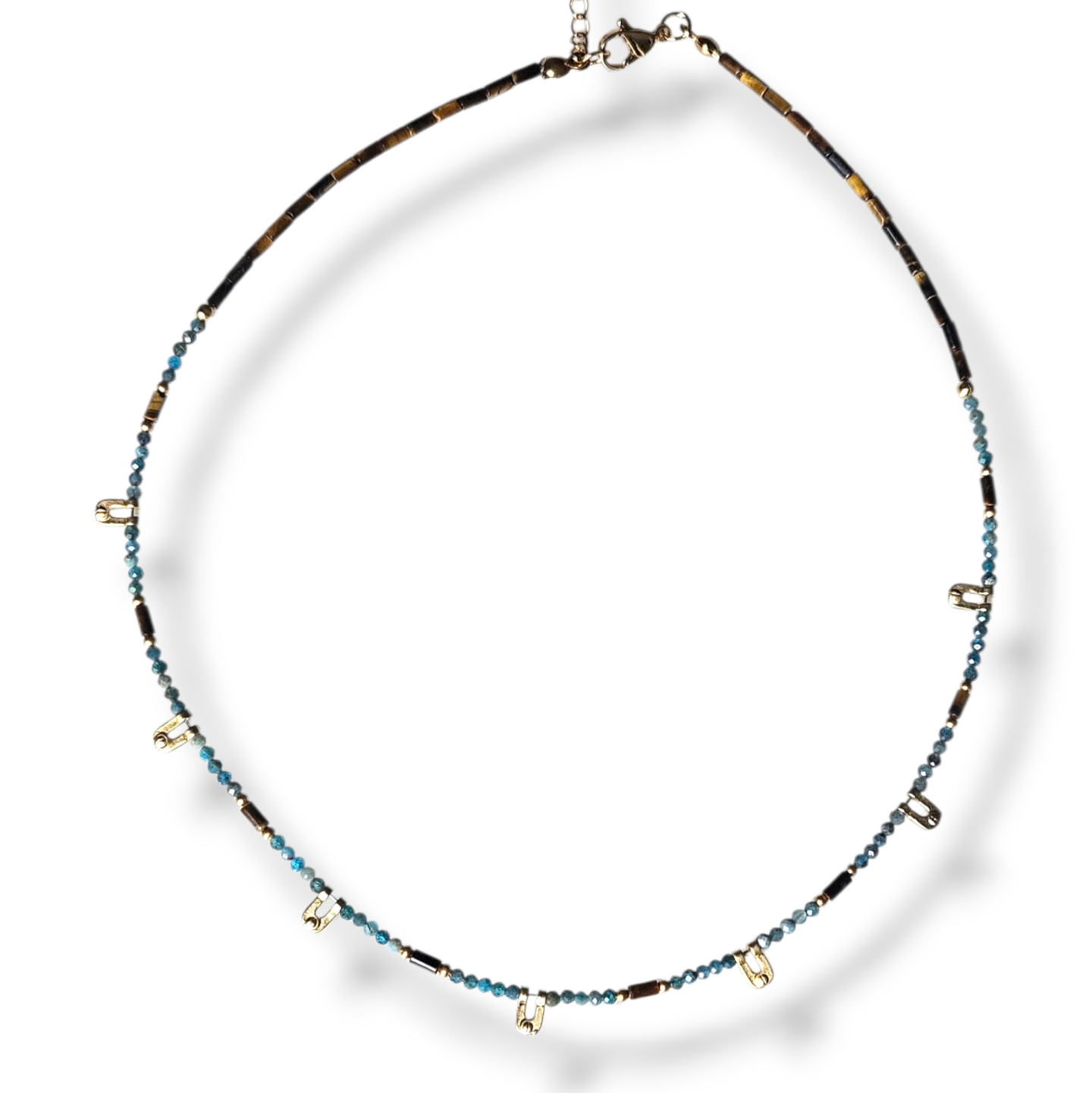 - Malzeme : Minimal turkuaz ve kaplangözü doğal taş ve pirinç üzeri altın kaplama aparatlar.