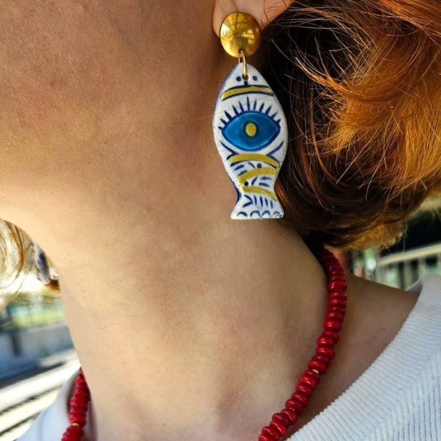 - Morocco Küpe el emeği seramik balıklar ile yapılmıştir.