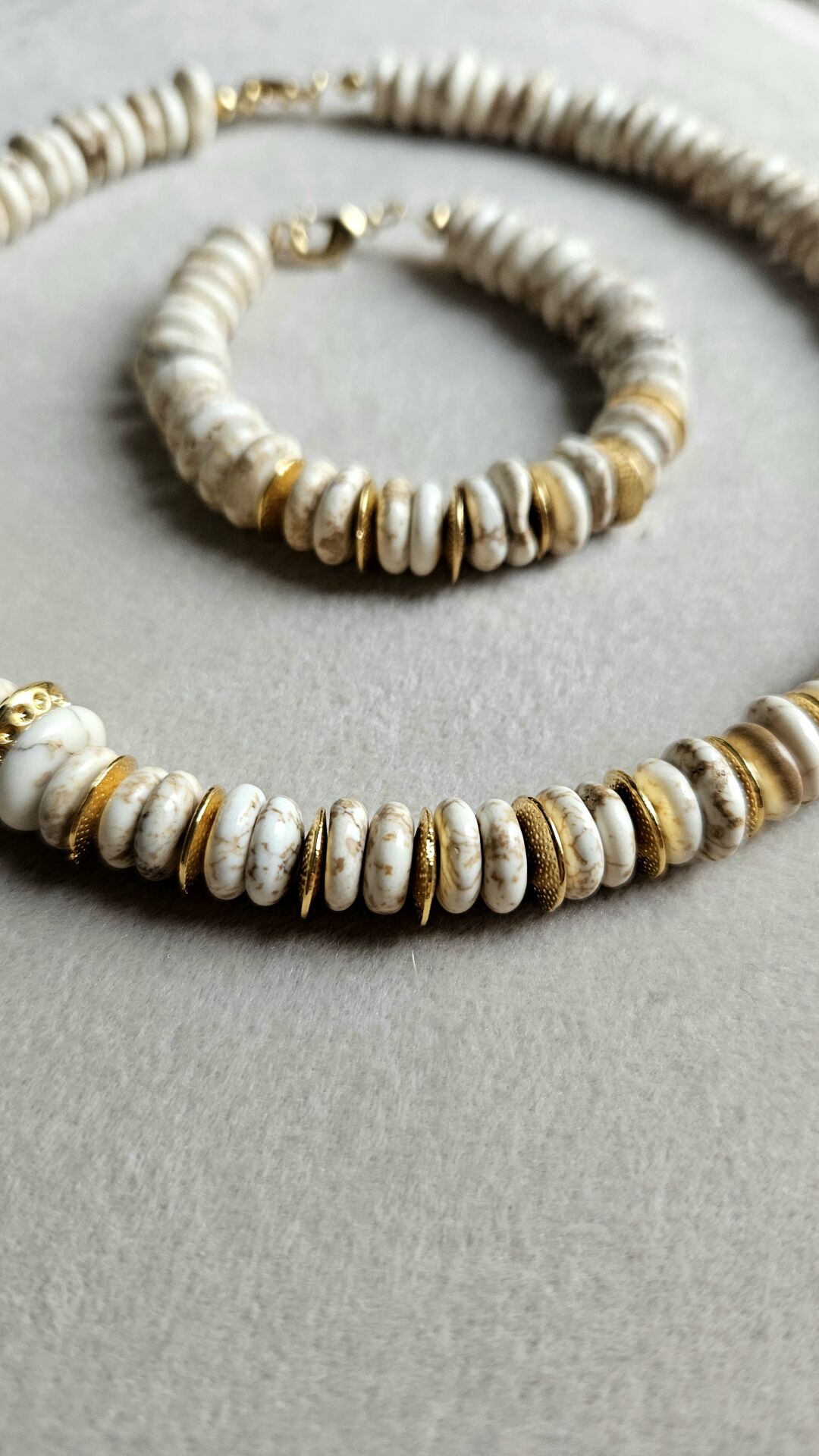 - Malzeme : Varasit doğal taş ve altın kaplama diskler.