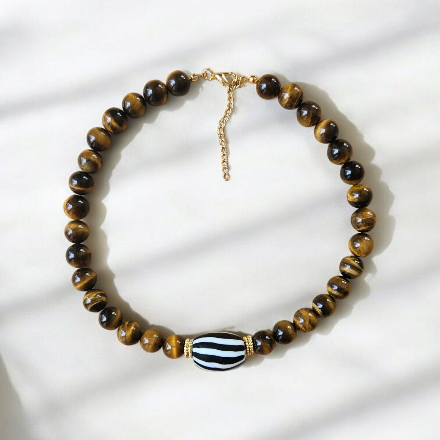 - Malzeme : 8 mm Kaplangözü doğal taş ve cam boncuk.