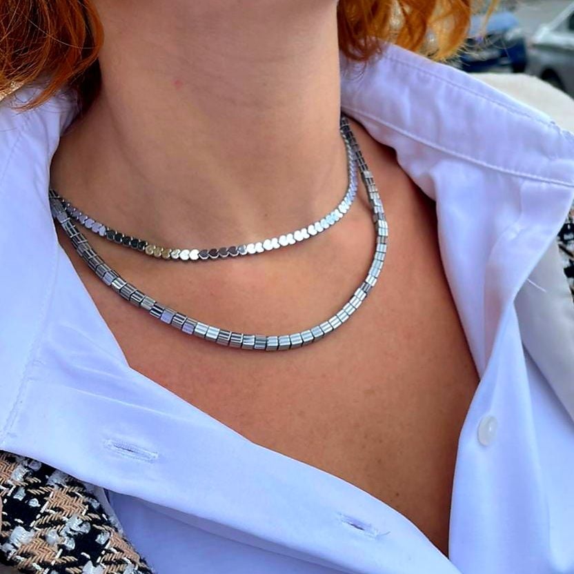 Şekilli hematit kolyeler iki seçenek olarak mevcuttur. Yukarıdaki kolye kalp kesim, aşağıdaki kolye ise kare kesimdir. Kolyelerinizi su ve kimyasaldan korumanızı tavsiye ederiz.