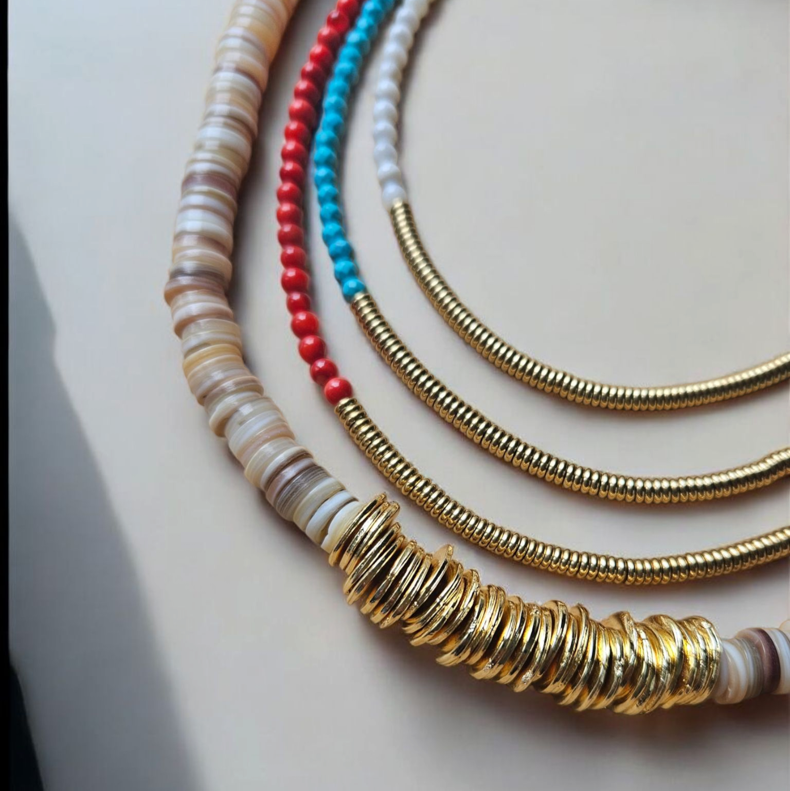 - Malzeme : Sedef doğal taş, altın kaplama pirinç disk boncuklar.