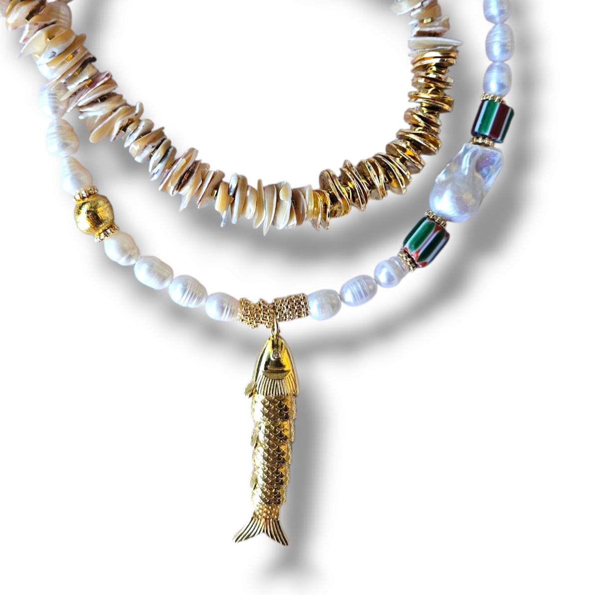 - Malzeme : Sedef doğal taş, altın kaplama pirinç disk boncuklar.