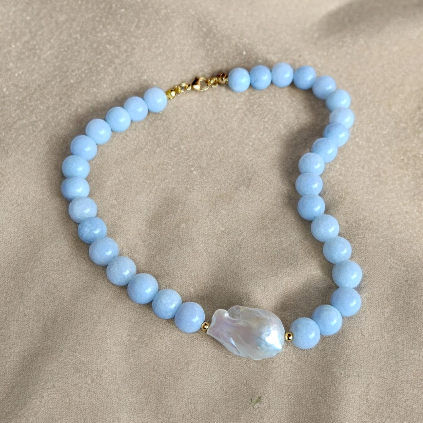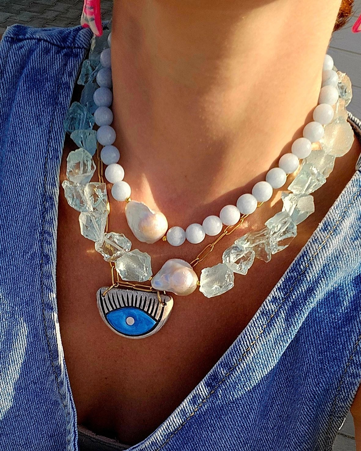 - Swan Kolye inci ve akuamarin taşları ile yapılmıştır.