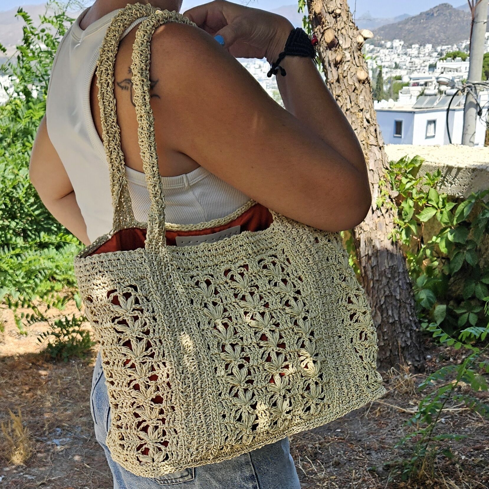 Tarçın Yansımalı Hasır Kol Çantası