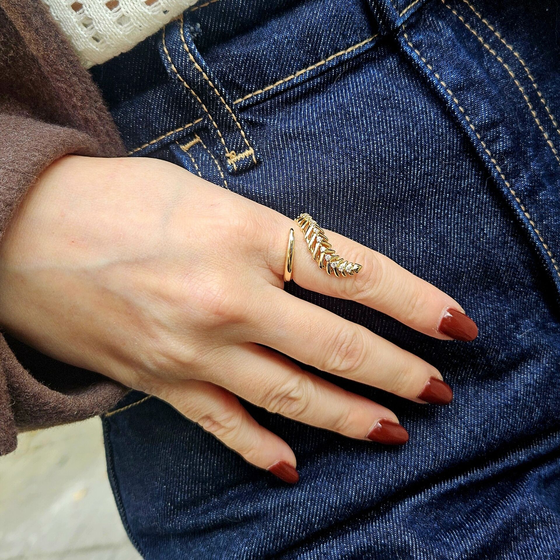 Taşlı Yaprak Ayarlanabilir Yüzük