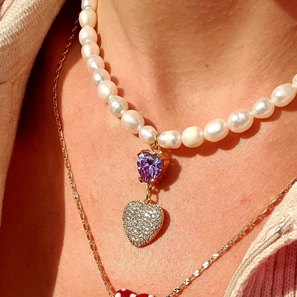 - Venice Kolye tatlı su incileri ve birinci sınıf altın kaplama zirkon taş aparatlarla yapılmıştır.